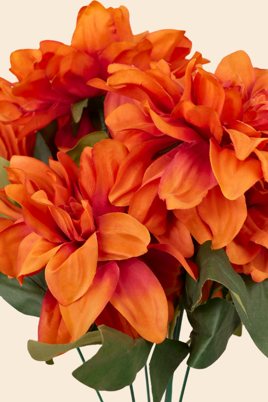 Faux Dahlia Splendid Flower Stem - Rust Orange
