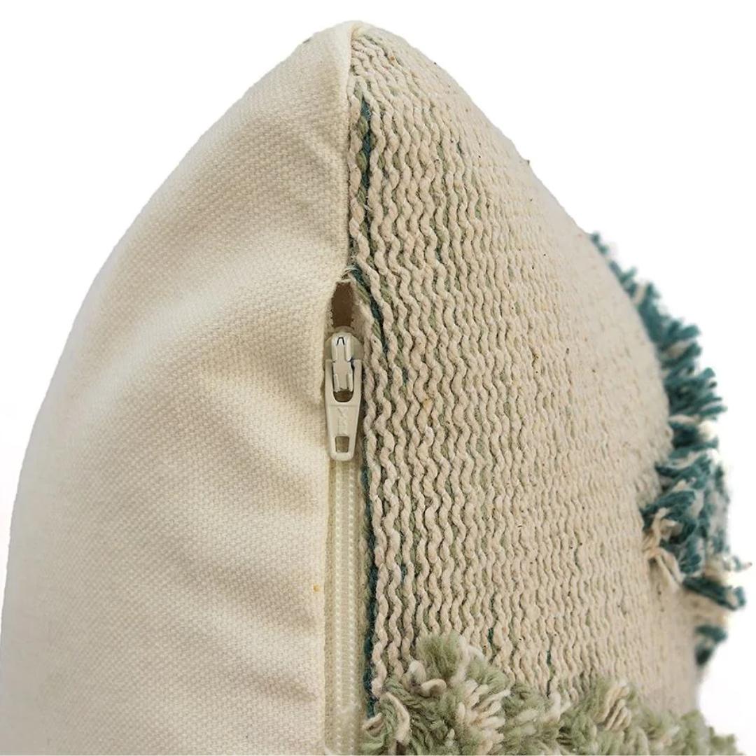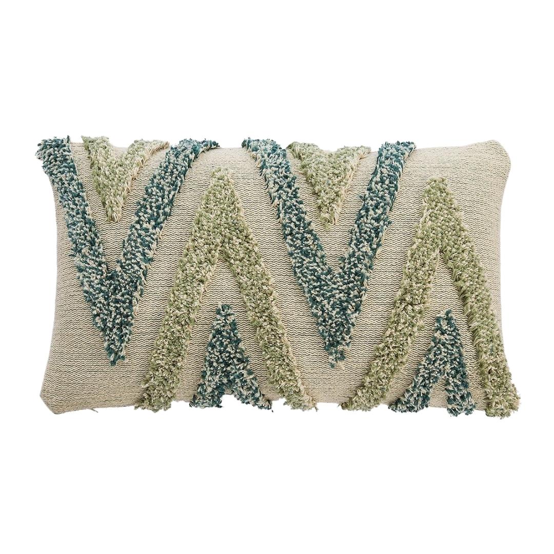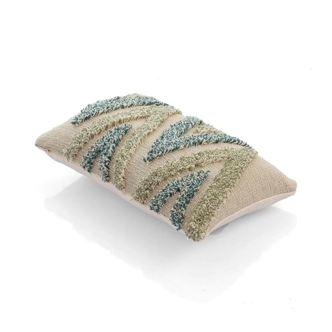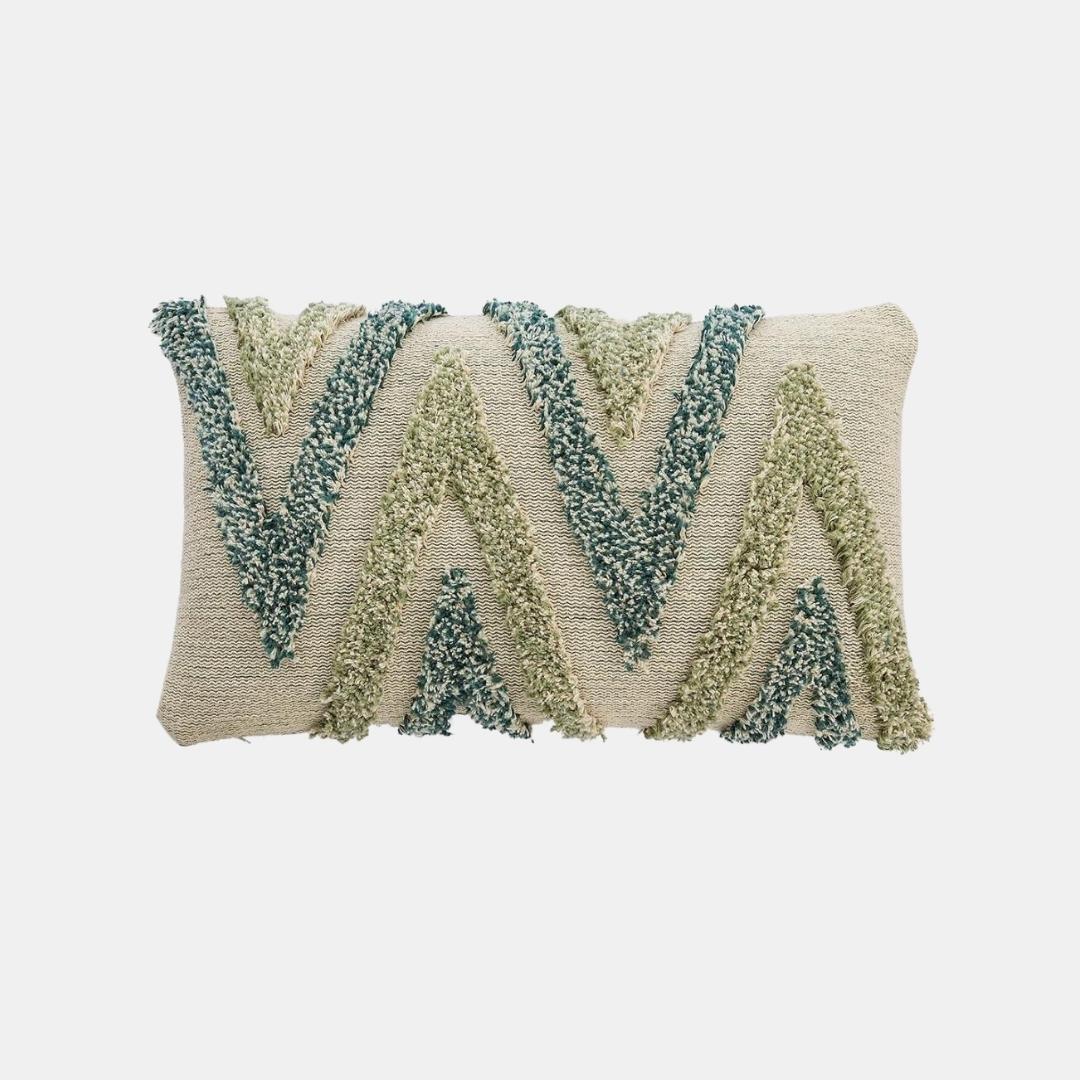 Arrowhead Mint, Green & Natural Cotton Knitted Decorative Cushion Cover (12 in x 20 in)