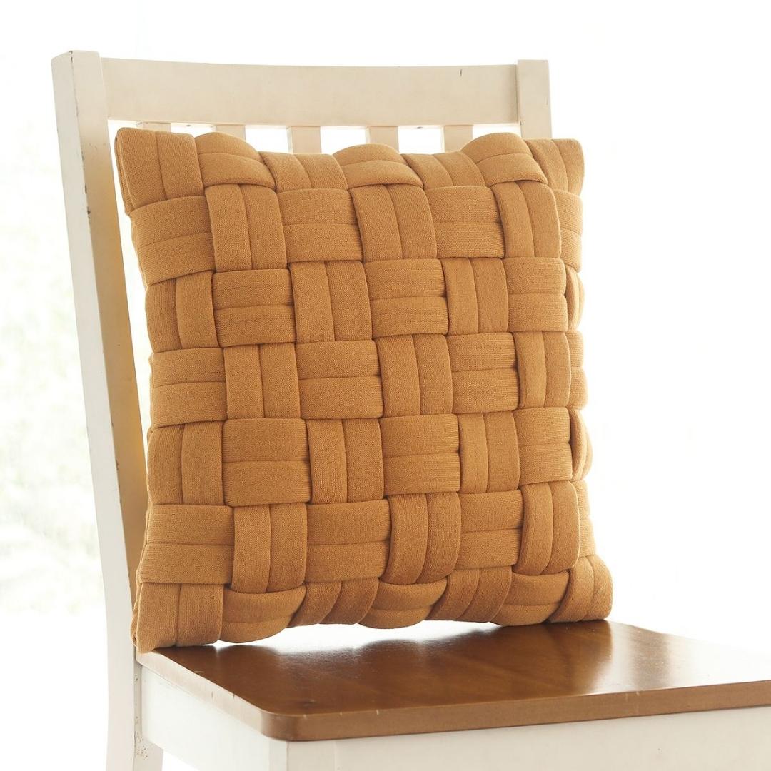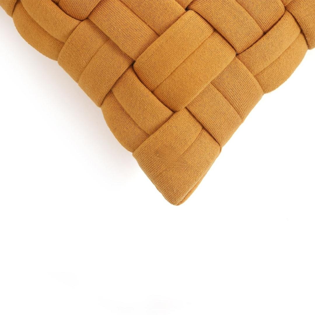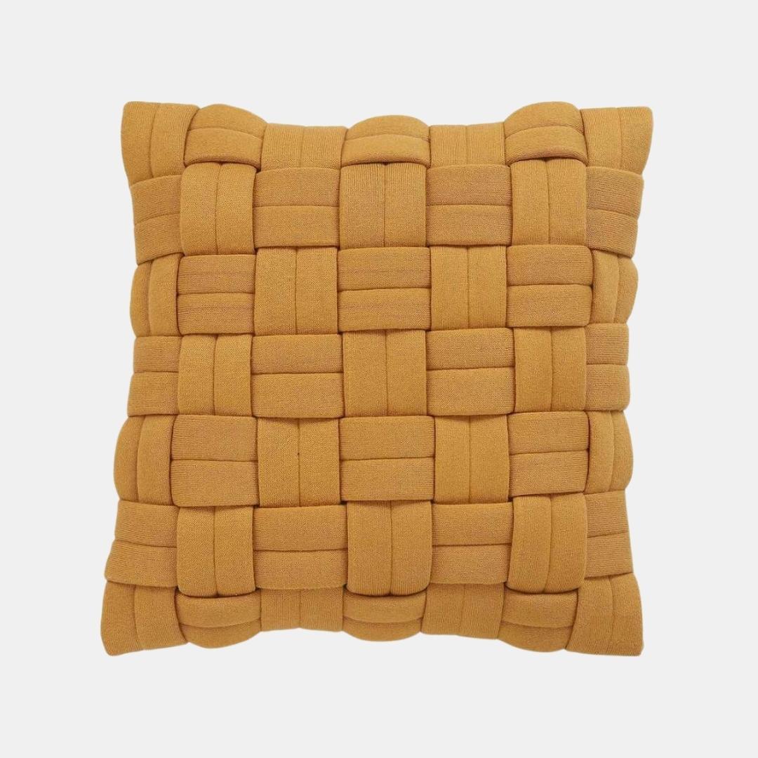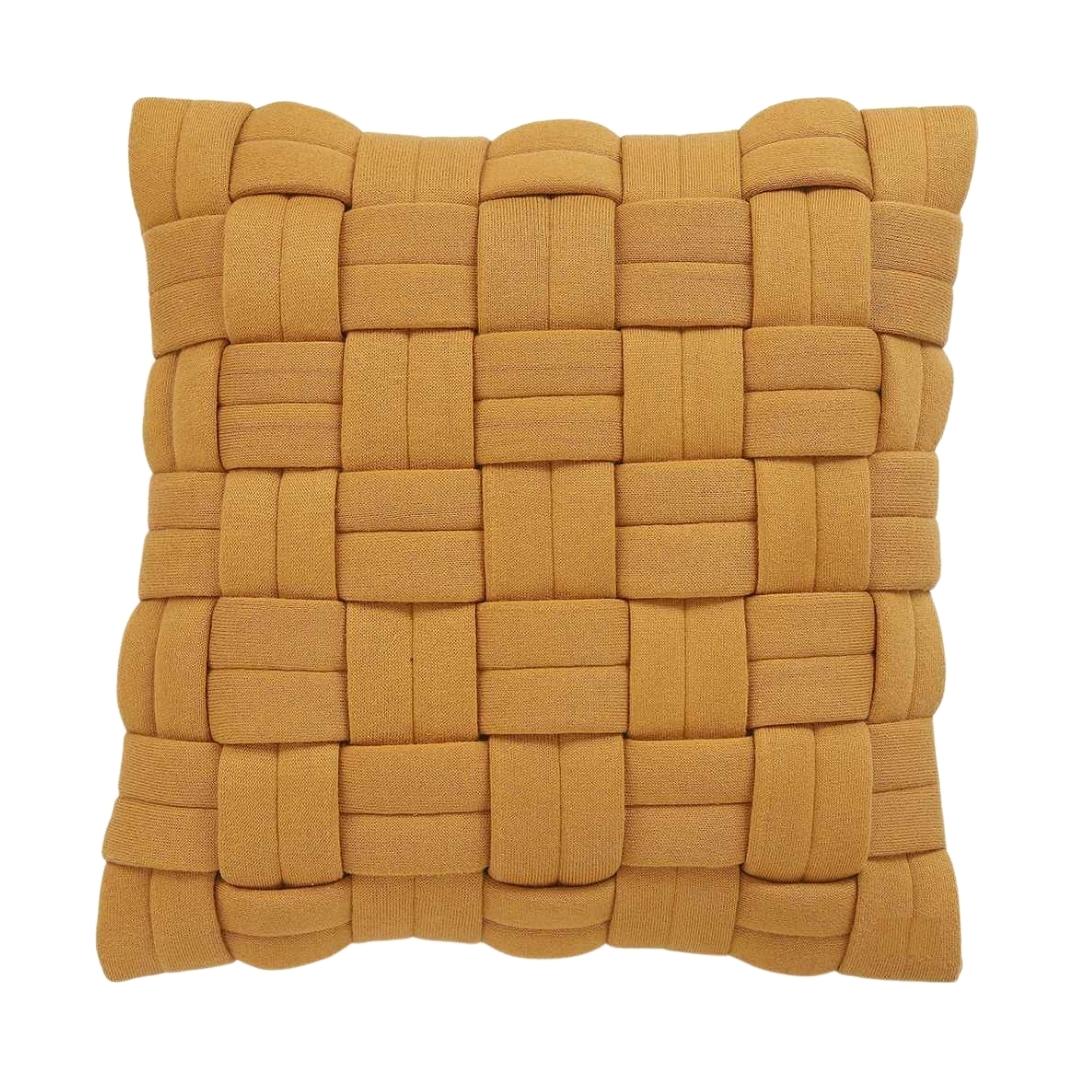 Basket Knit Mustard Cotton Knitted Decorative Cushion Cover (16 in x 16 in)