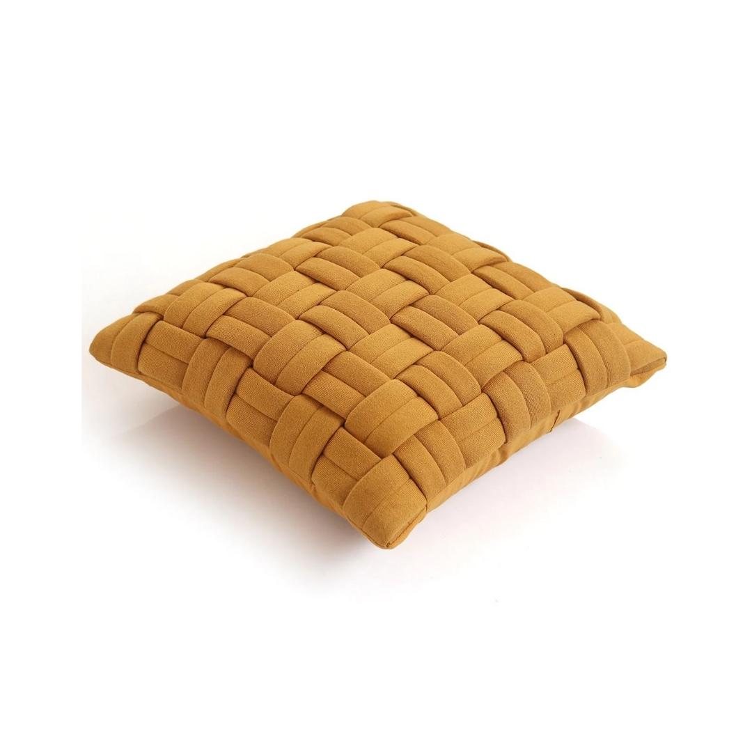 Create a warm and inviting atmosphere with the Basket Knit Mustard Cotton Knitted Decorative Cushion Cover. Measuring 16x16 inches, this cushion cover features a rich mustard yellow color and a textured basket knit pattern. Crafted from high-quality cotton, it's both stylish and comfortable for your decor.