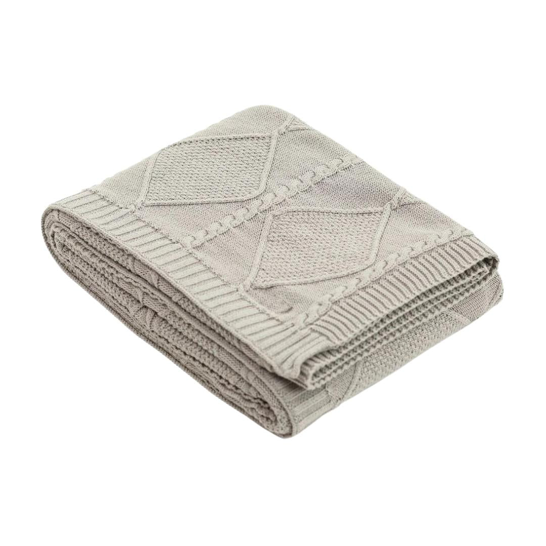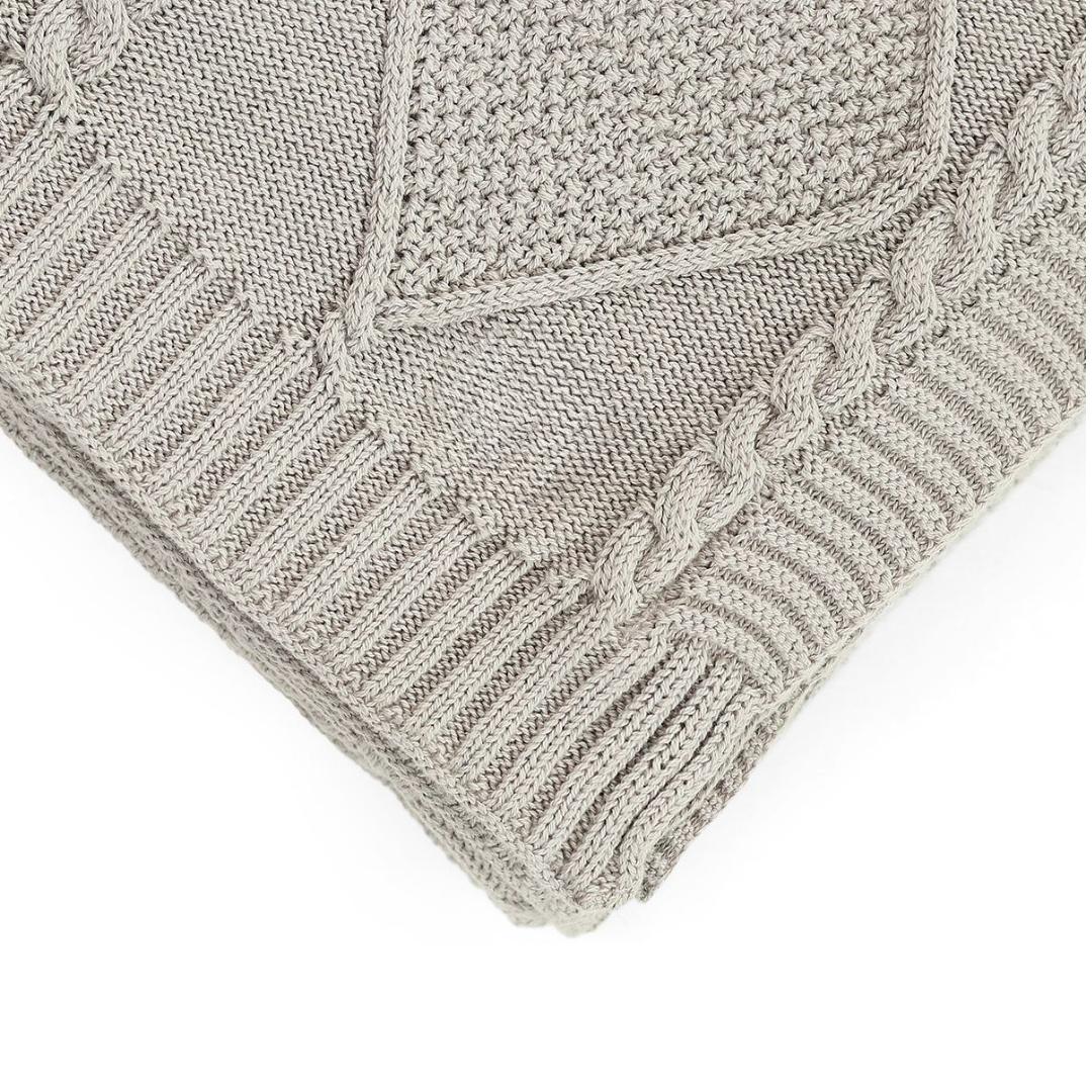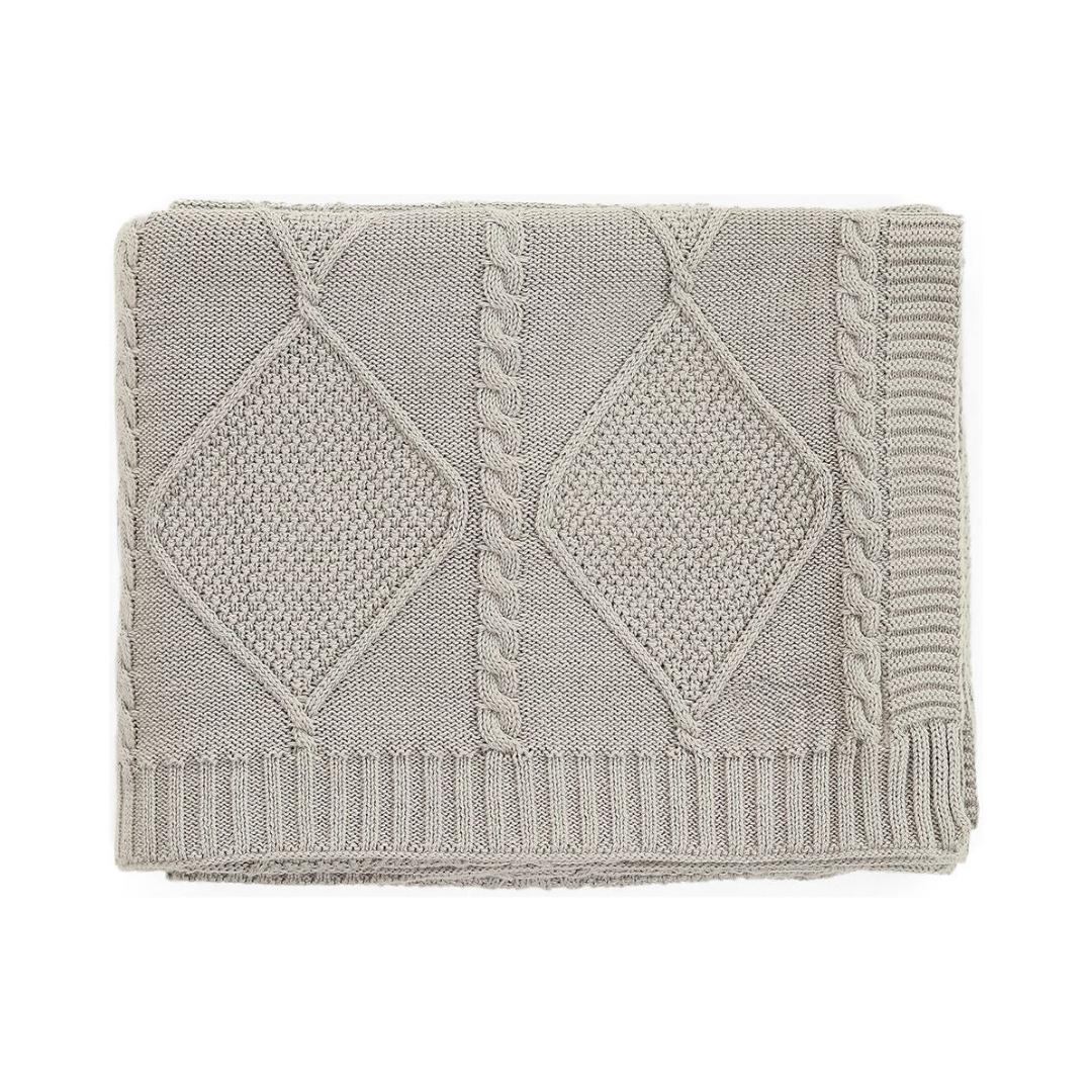 Cable Moss Cool Grey Cotton Knitted Throw Blanket (50 in x 60 in)