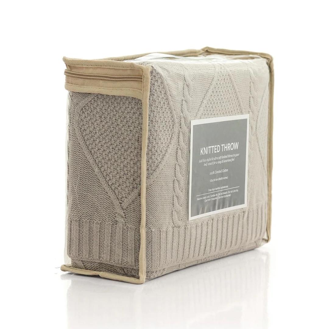 Elevate your home decor with the Cable Moss Cool Grey Cotton Knitted Throw Blanket. Measuring 50x60 inches, this throw is the perfect addition to your living room or bedroom. The cool grey color complements a wide range of styles, and the textured cable moss design adds a touch of elegance. Made from soft and durable cotton, this blanket is perfect for staying warm and stylish.