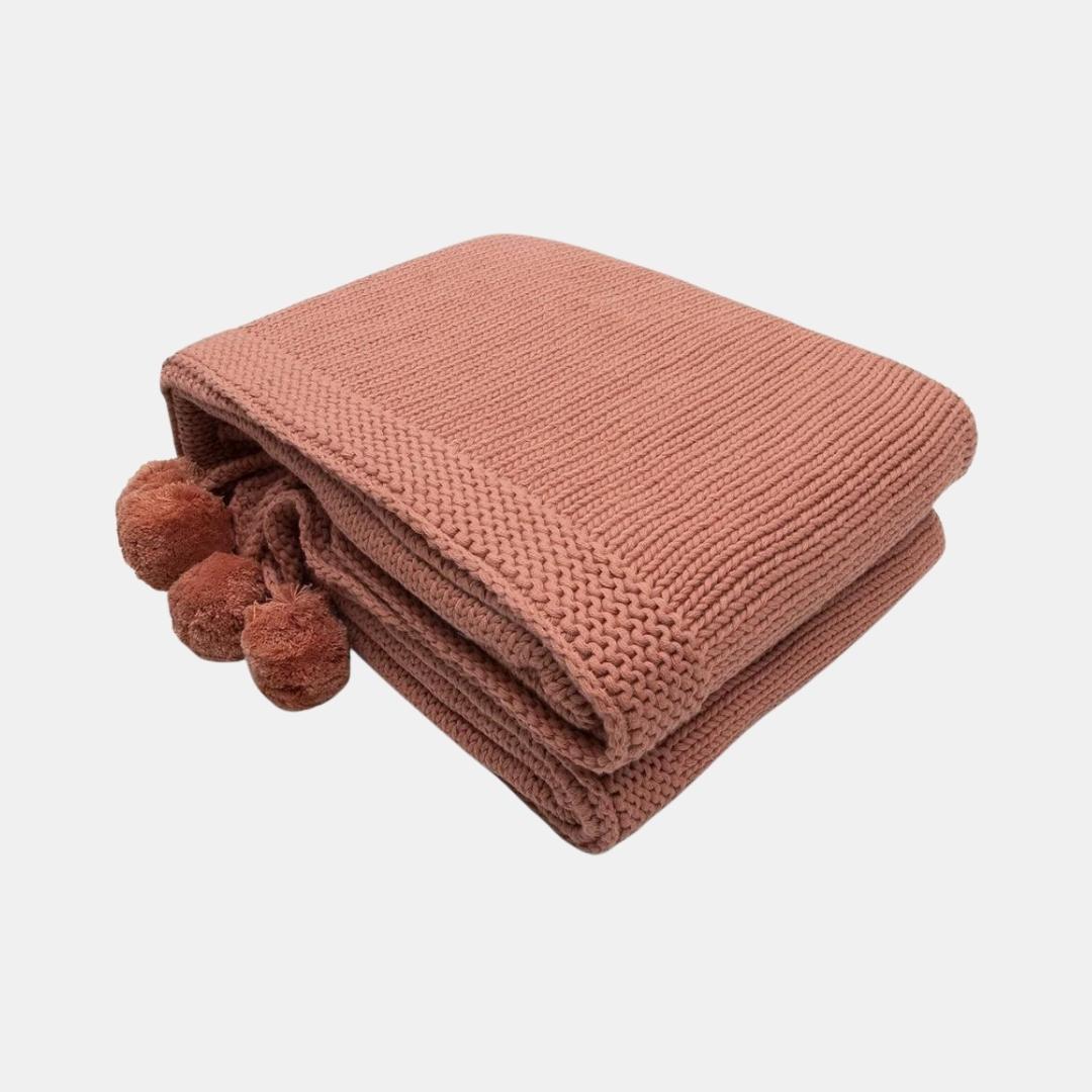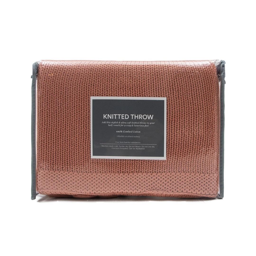 Chunky Jersey Coral Cotton Knitted Throw Blanket (50 in x 60 in)