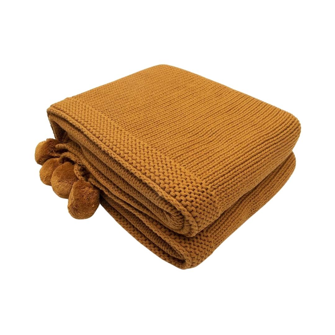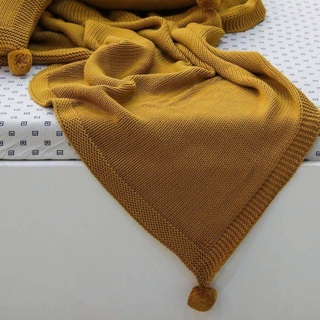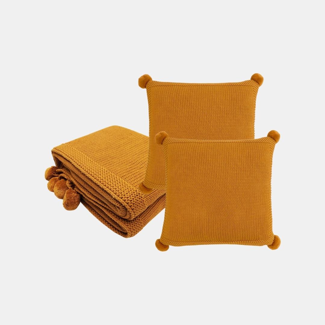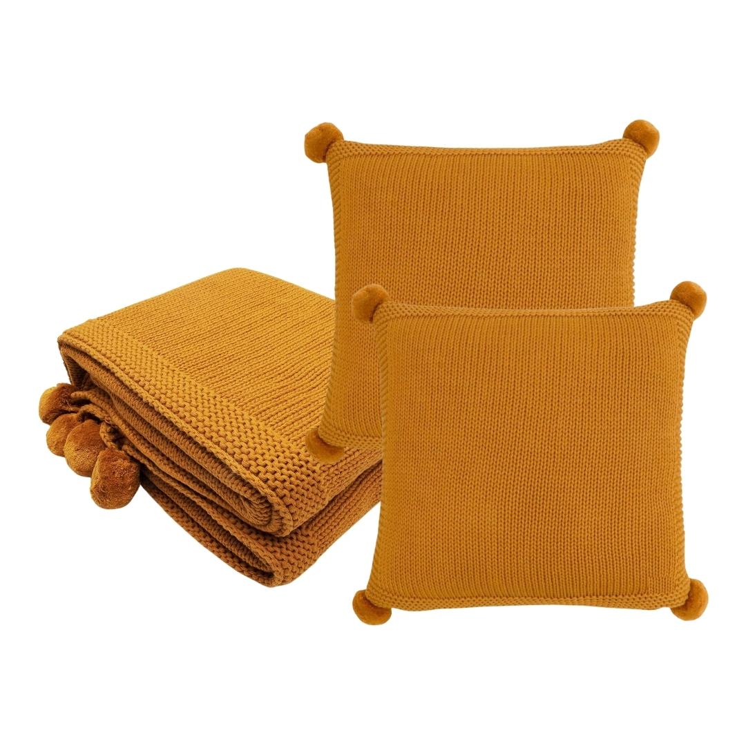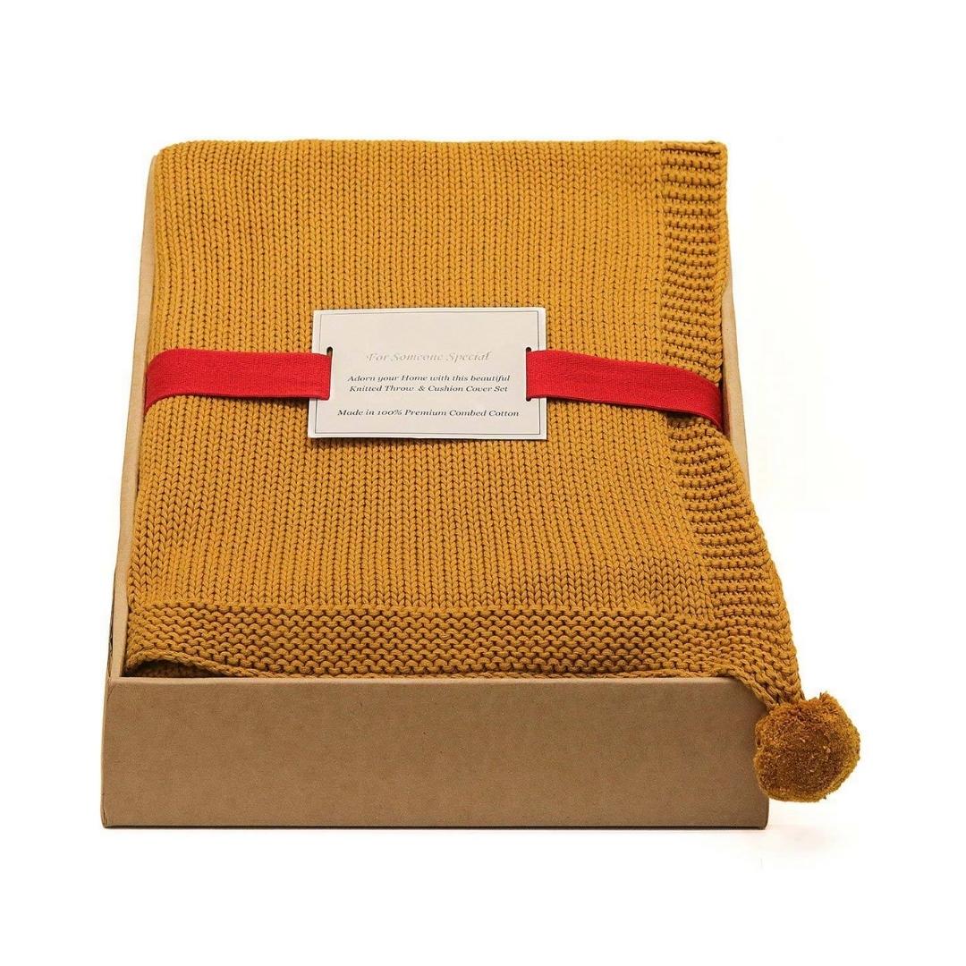 Chunky Jersey Mustard Throw & Cushion Cover Set (16 in x 16 in)