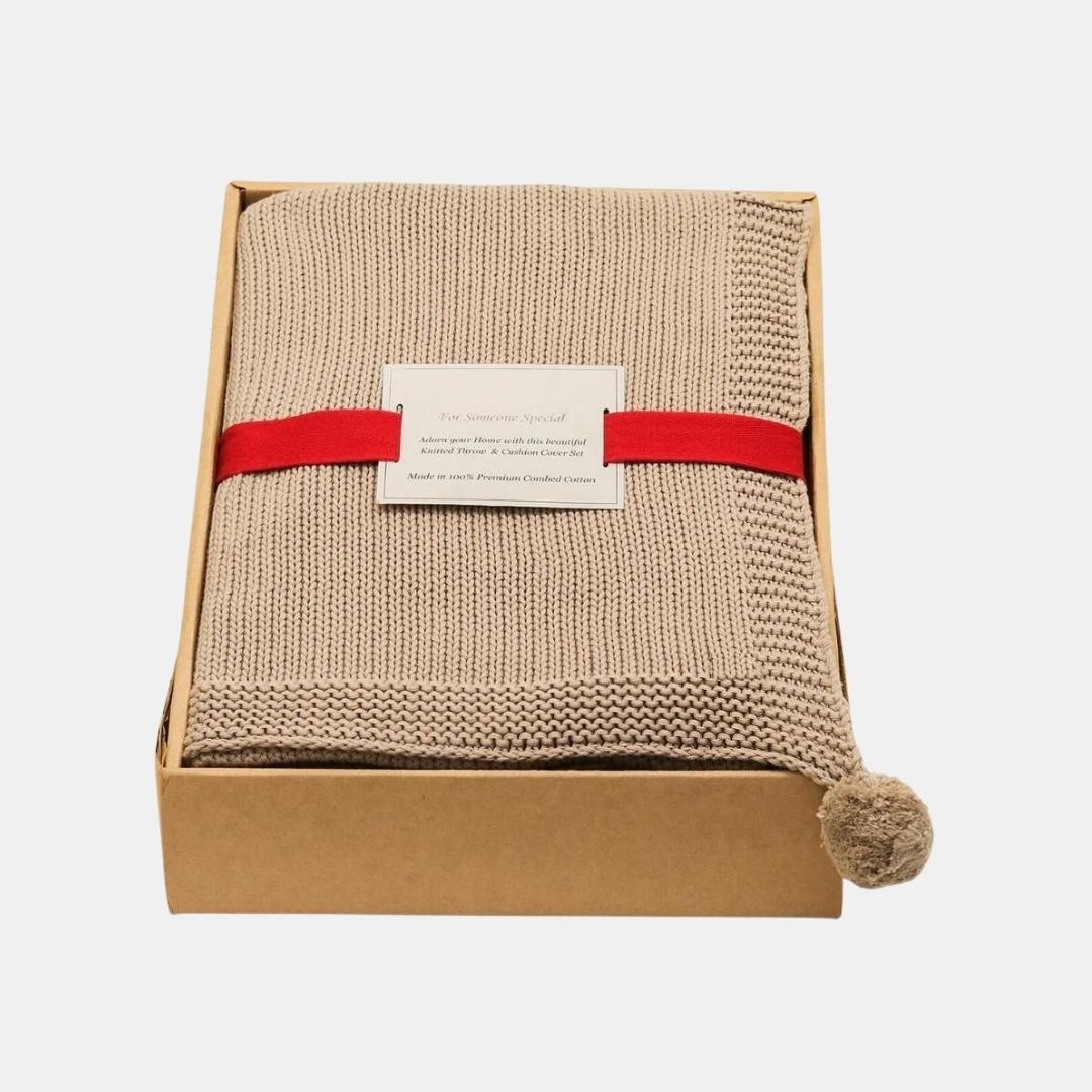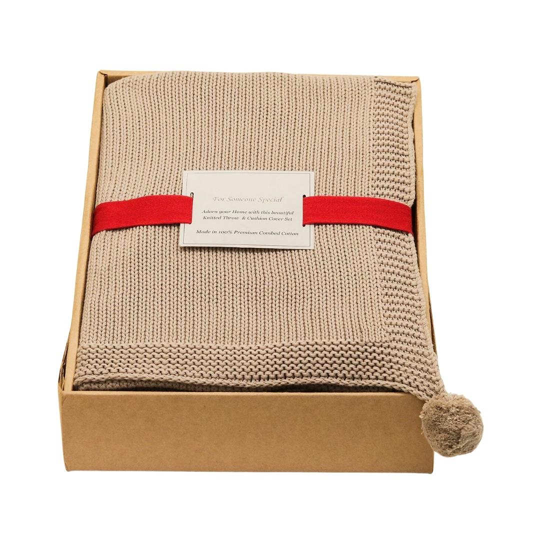 Chunky Jersey Stone & Natural Throw & Cushion Cover Set (16 in x 16 in)