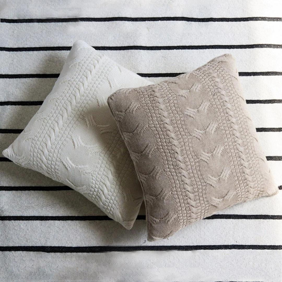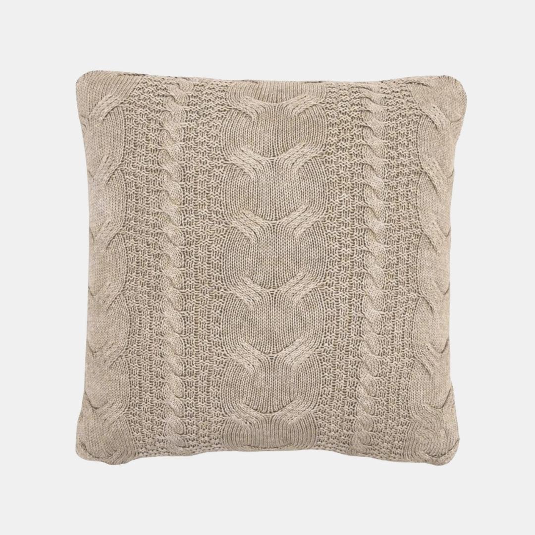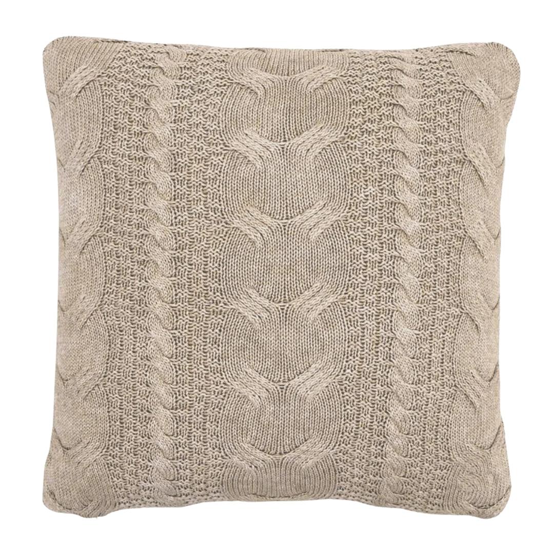 Classical Light Beige Melange Cotton Knitted Decorative Cushion Cover (18 in x 18 in)