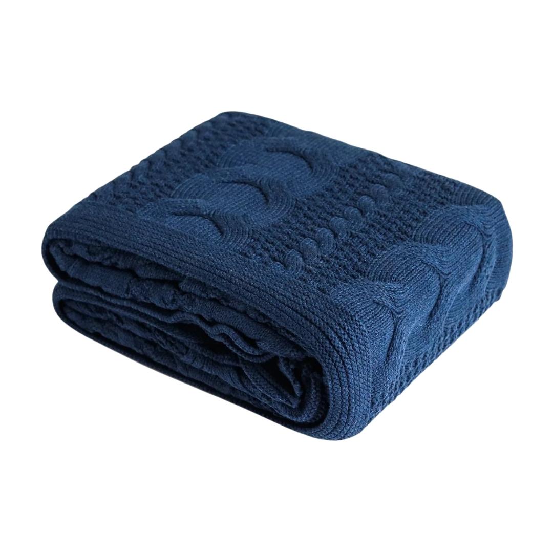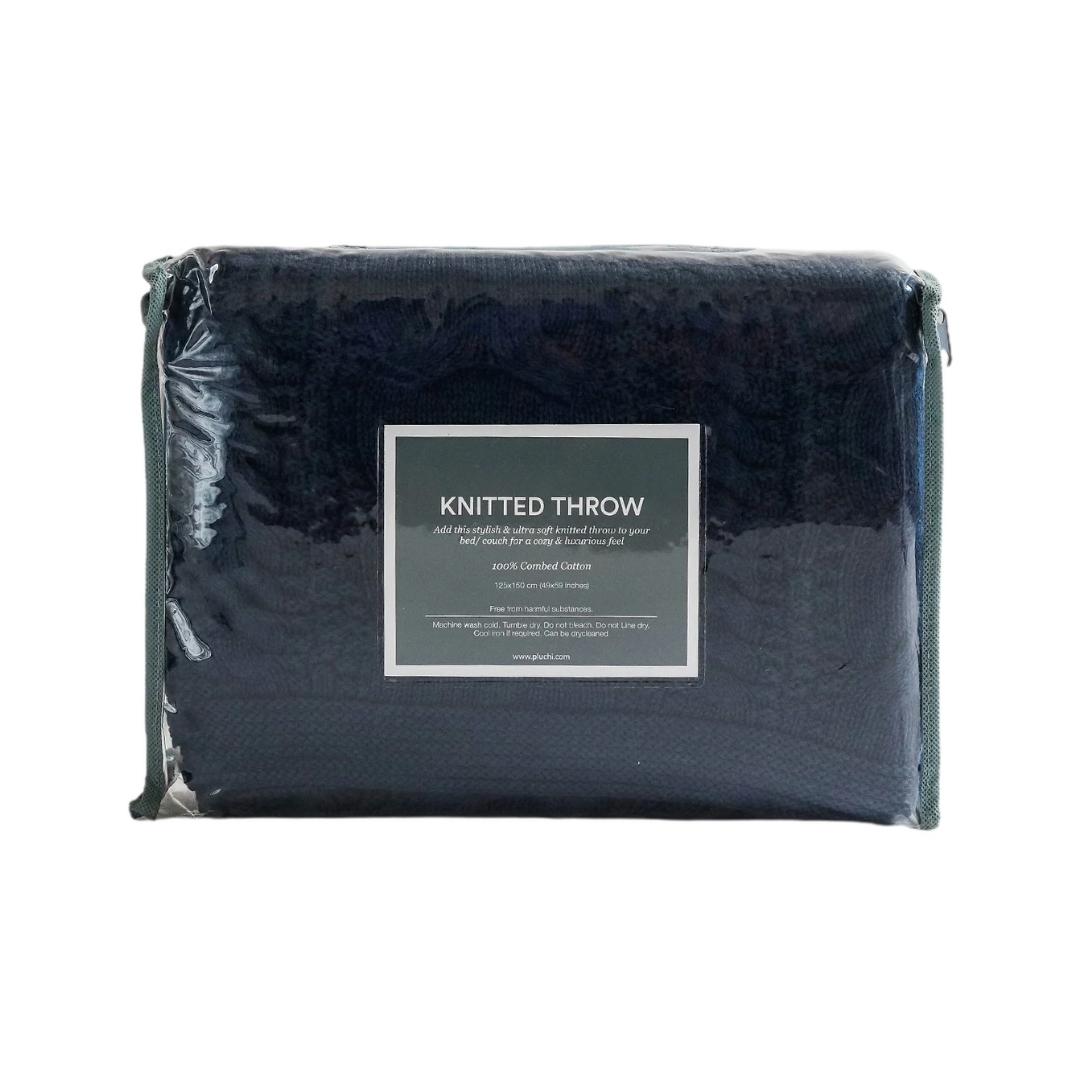 Classical Navy Melange Cotton Knitted Throw Blanket (50 in x 60 in)