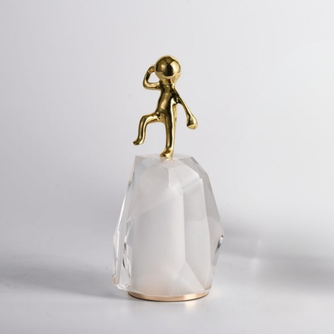 The White Crystal Elegance with the Futuristic Man Standing on Top is a symbol of innovation, progress, and artistic expression. Crafted from premium crystal, this ornament features a futuristic man standing atop a crystalline structure. It invites you to ponder the boundaries of human achievement and the beauty of limitless imagination. Place it on your desk, shelf, or as a centerpiece to spark conversations about the fusion of art and technology. It's a piece that represents the ever-evolving nature of human creativity.