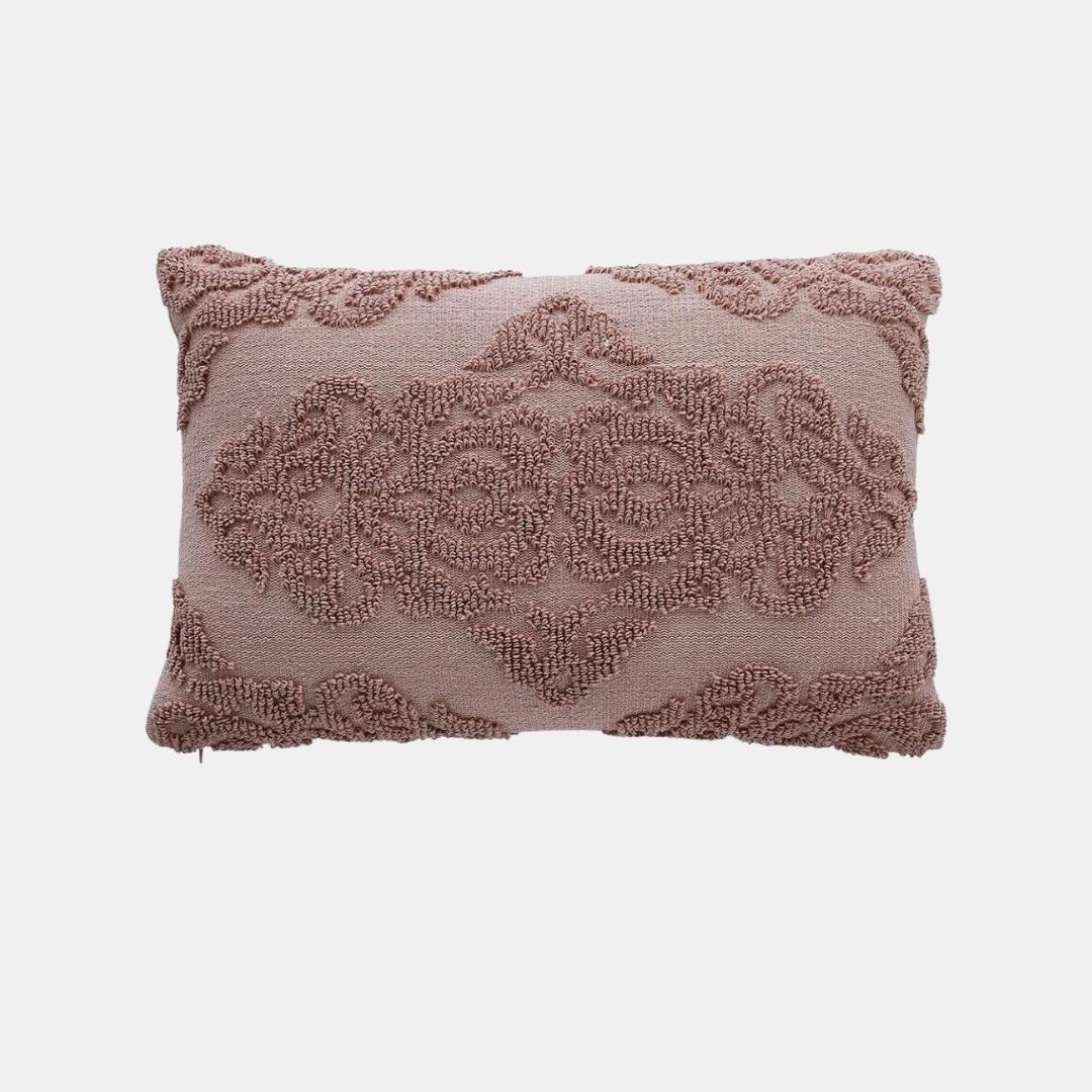 Damask Blush Pink Cotton Knitted Decorative Cushion Cover (16 in x 24 in)