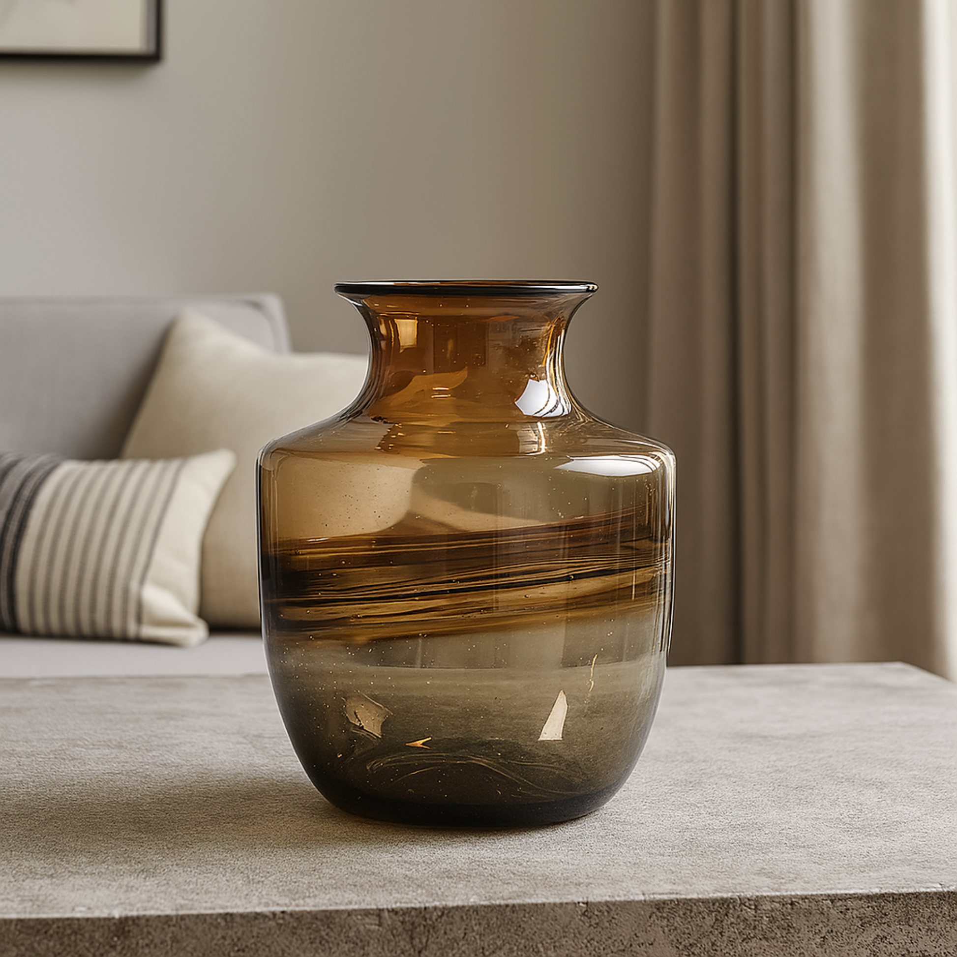 Where Warmth Meets Cool - The Dusk & Dawn Glass Vase is a harmonious blend of smoky grey and golden amber glass, symbolizing the transition from night to morning. A striking two-tone design that elevates any floral arrangement or stands bold on its own.