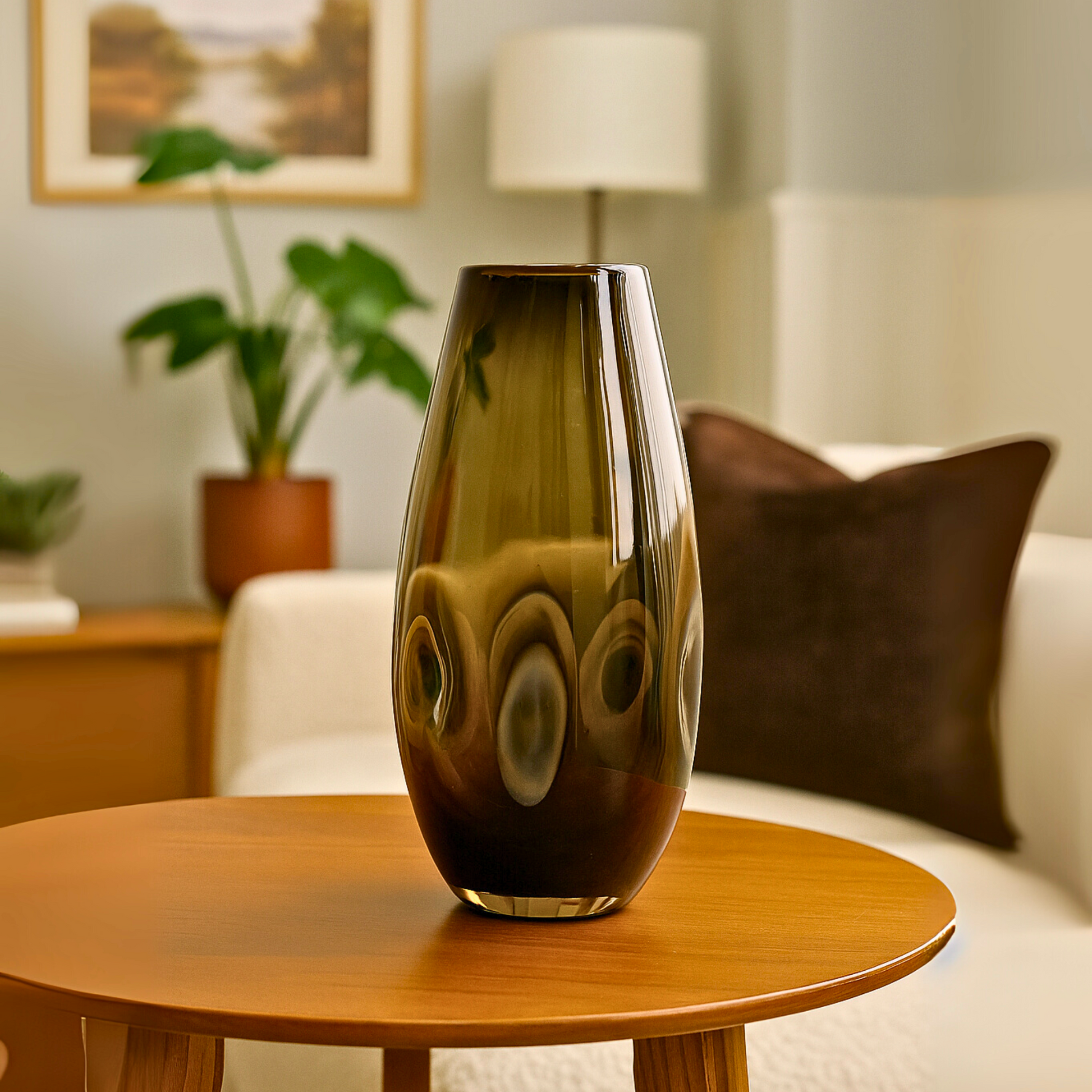 Rooted in Nature - The Earthform Glass Vase features deep brown tones and a natural, hand-thrown texture that brings warmth and organic elegance to any setting. Ideal for serving or as a standalone statement piece.