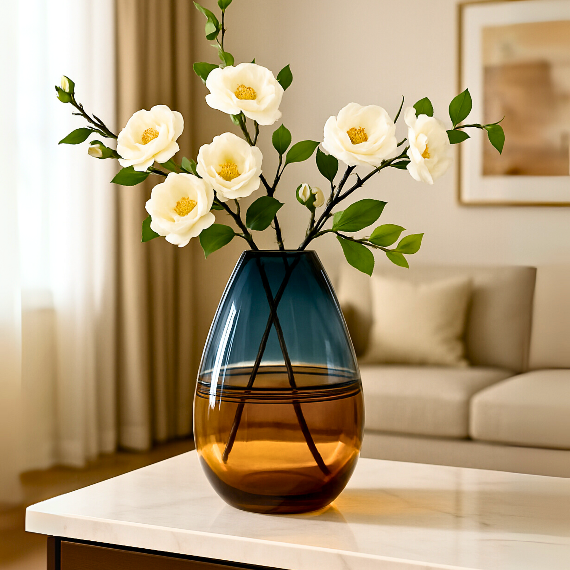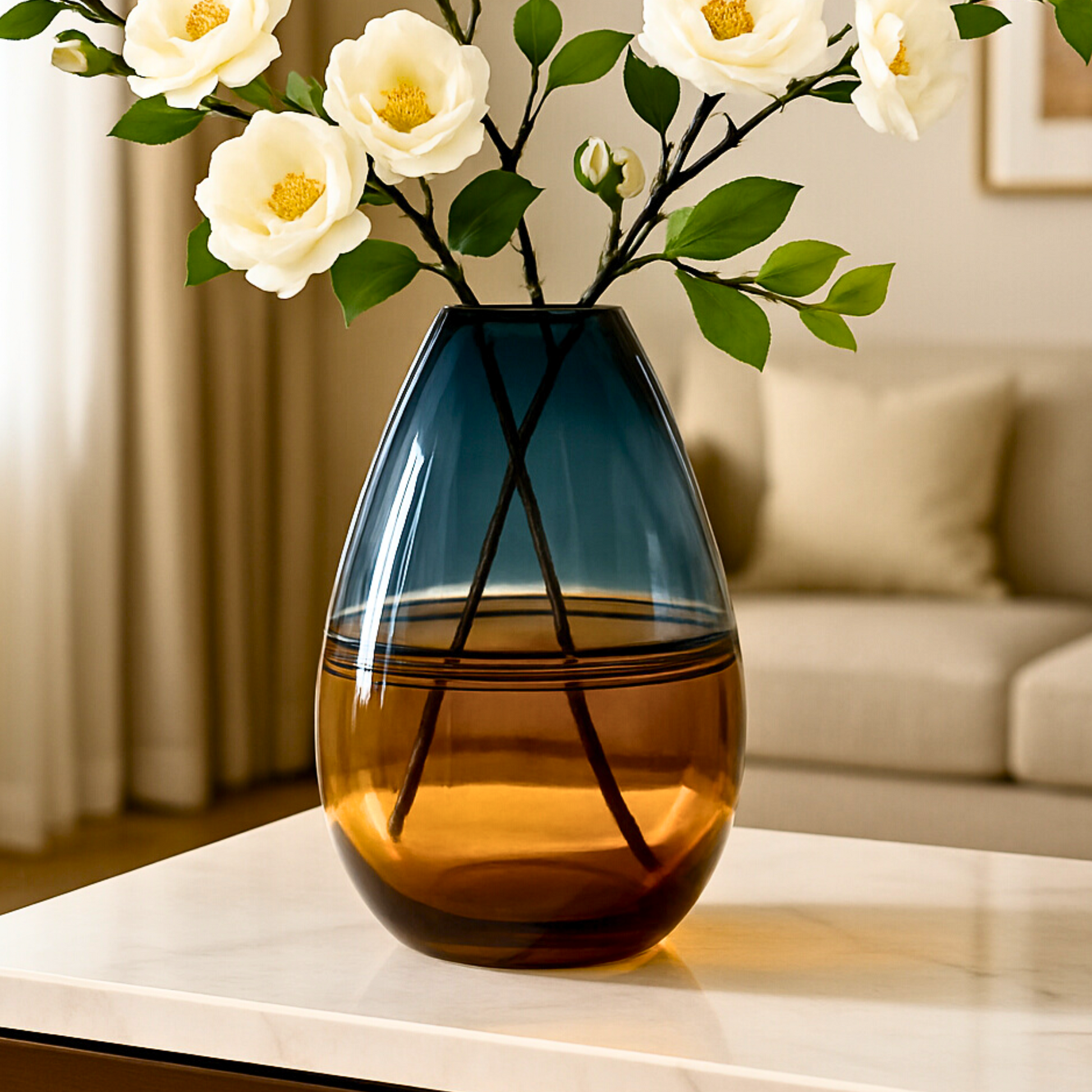 Where Fire Meets Water - Dynamic and modern, the Emberwave Glass Vase features a dramatic gradient from cobalt blue to amber-orange. A sculptural design that stands out in both minimalist and boho-chic settings.