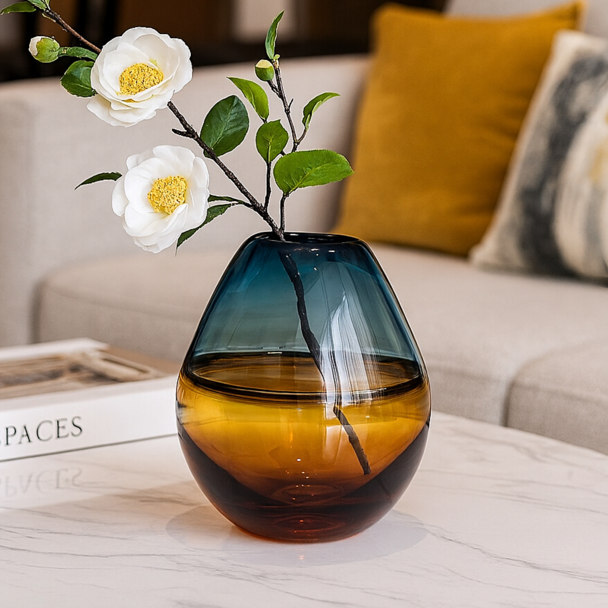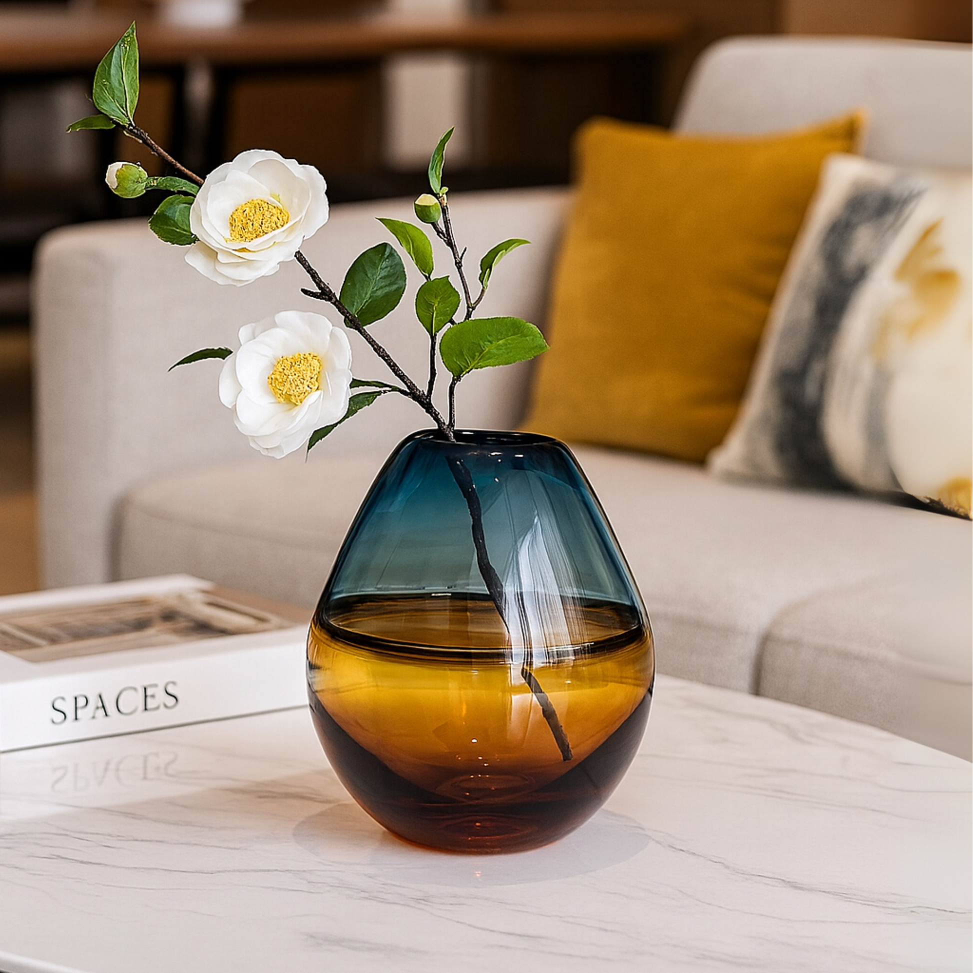 Where Fire Meets Water - Dynamic and modern, the Emberwave Glass Vase features a dramatic gradient from cobalt blue to amber-orange. A sculptural design that stands out in both minimalist and boho-chic settings.