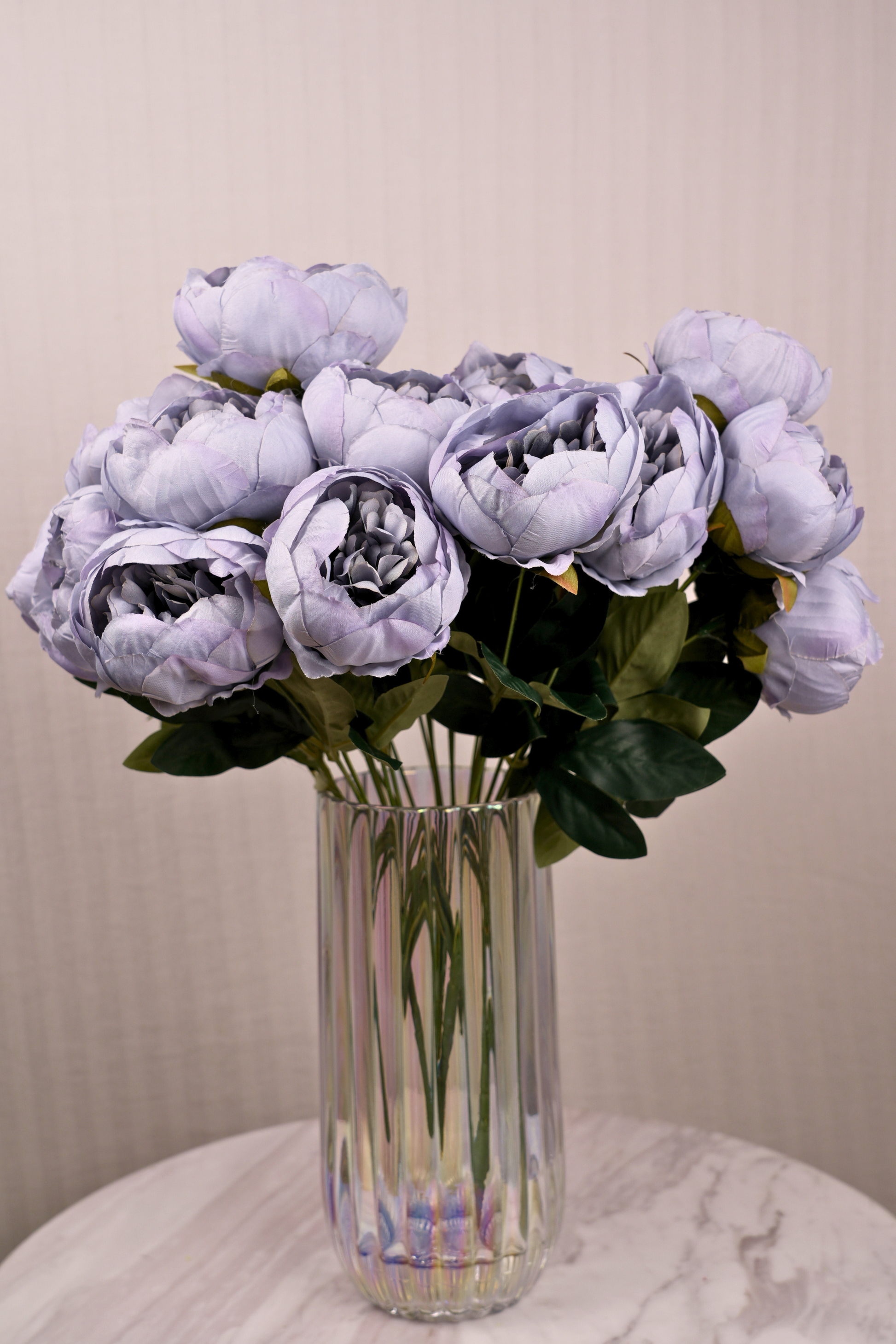 Bring soft elegance to your décor with our Faux Peonies Elegant Bloom Flower Stem in Powder Blue. Featuring lush, layered petals and a lifelike stem, this artificial peony adds a romantic, timeless feel to any floral arrangement. Ideal for weddings, home styling, or seasonal displays with a delicate touch of color. Crafted from premium materials to mirror the fullness and beauty of real peonies that last year-round. Display on its own for a graceful accent or blend with other stems for a fuller bouquet. Powder blue faux peony | Artificial flower stem | Realistic elegant floral décor