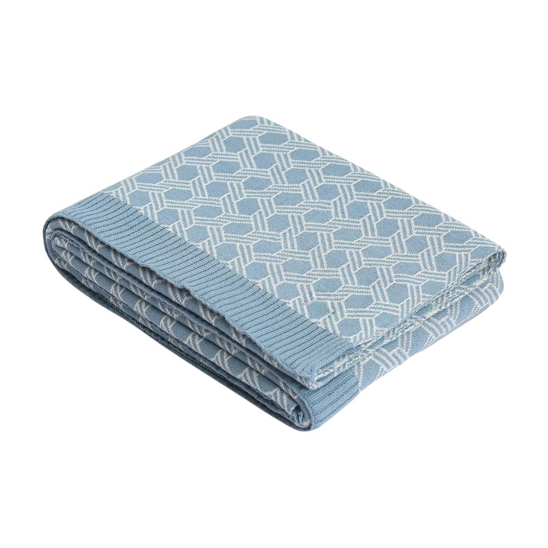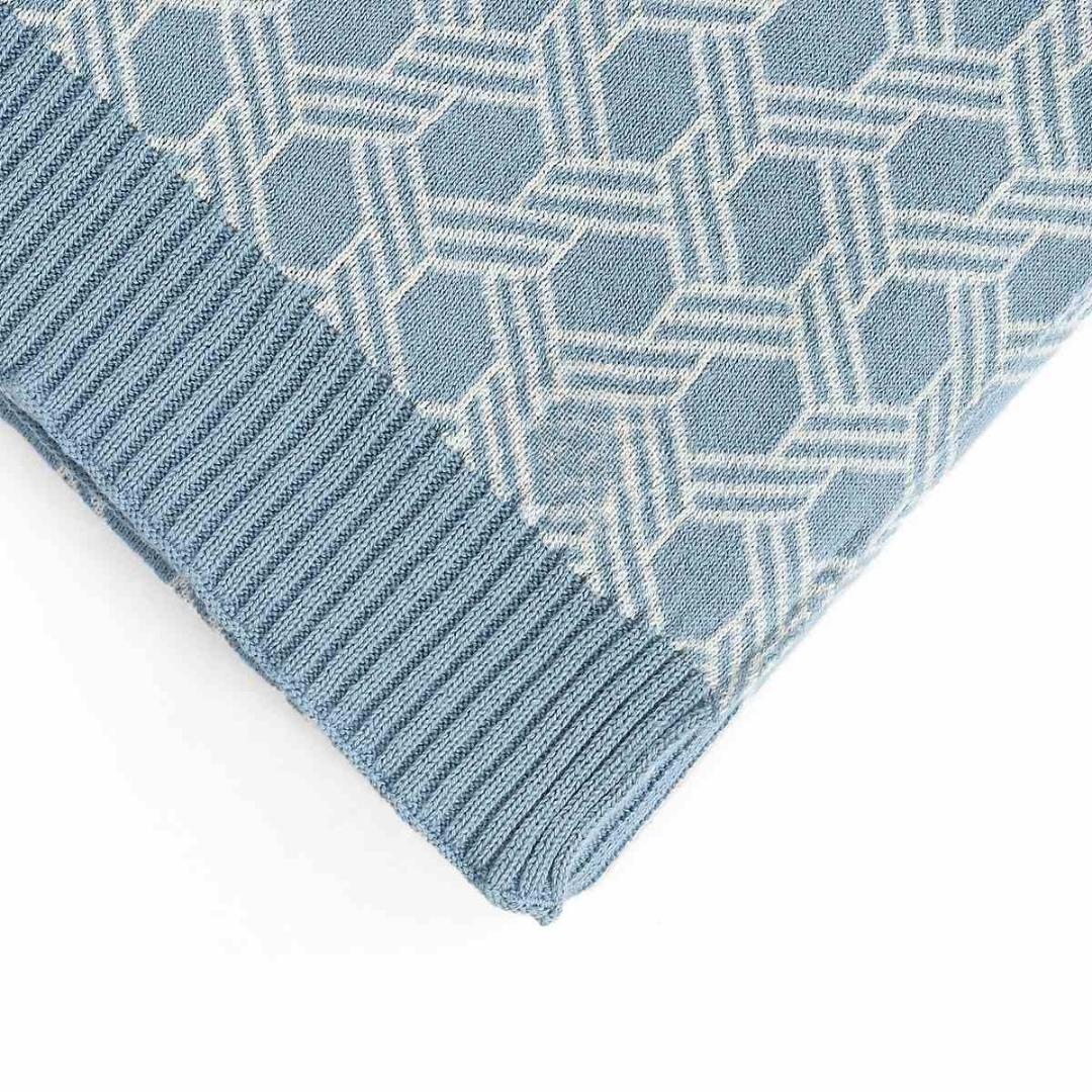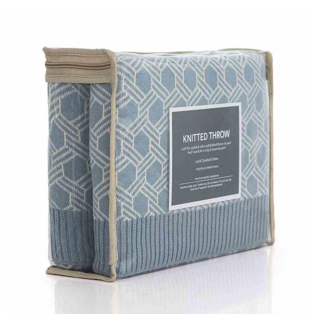 Geometric Alica Blue & Natural Cotton Knitted Throw Blanket (50 in x 60 in)