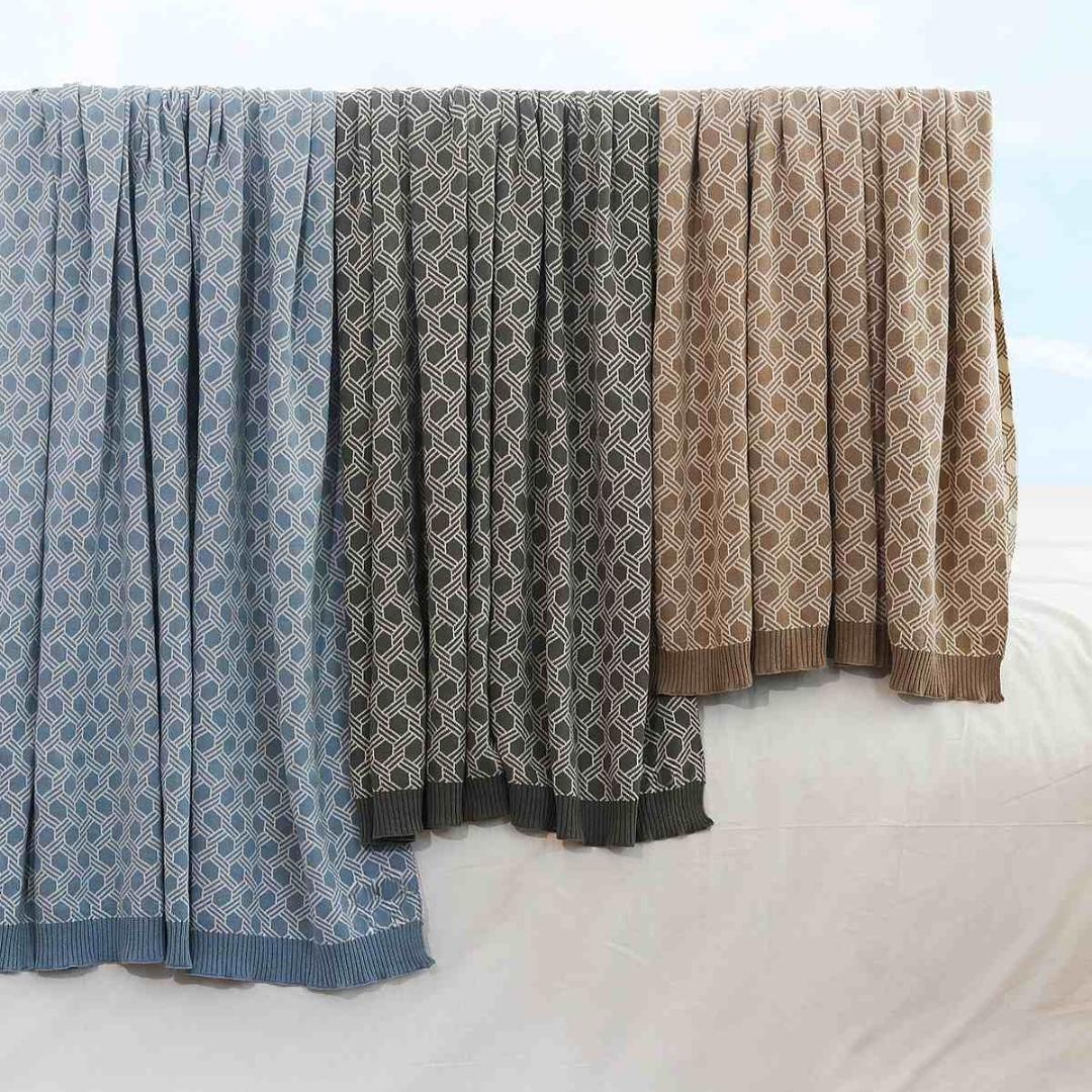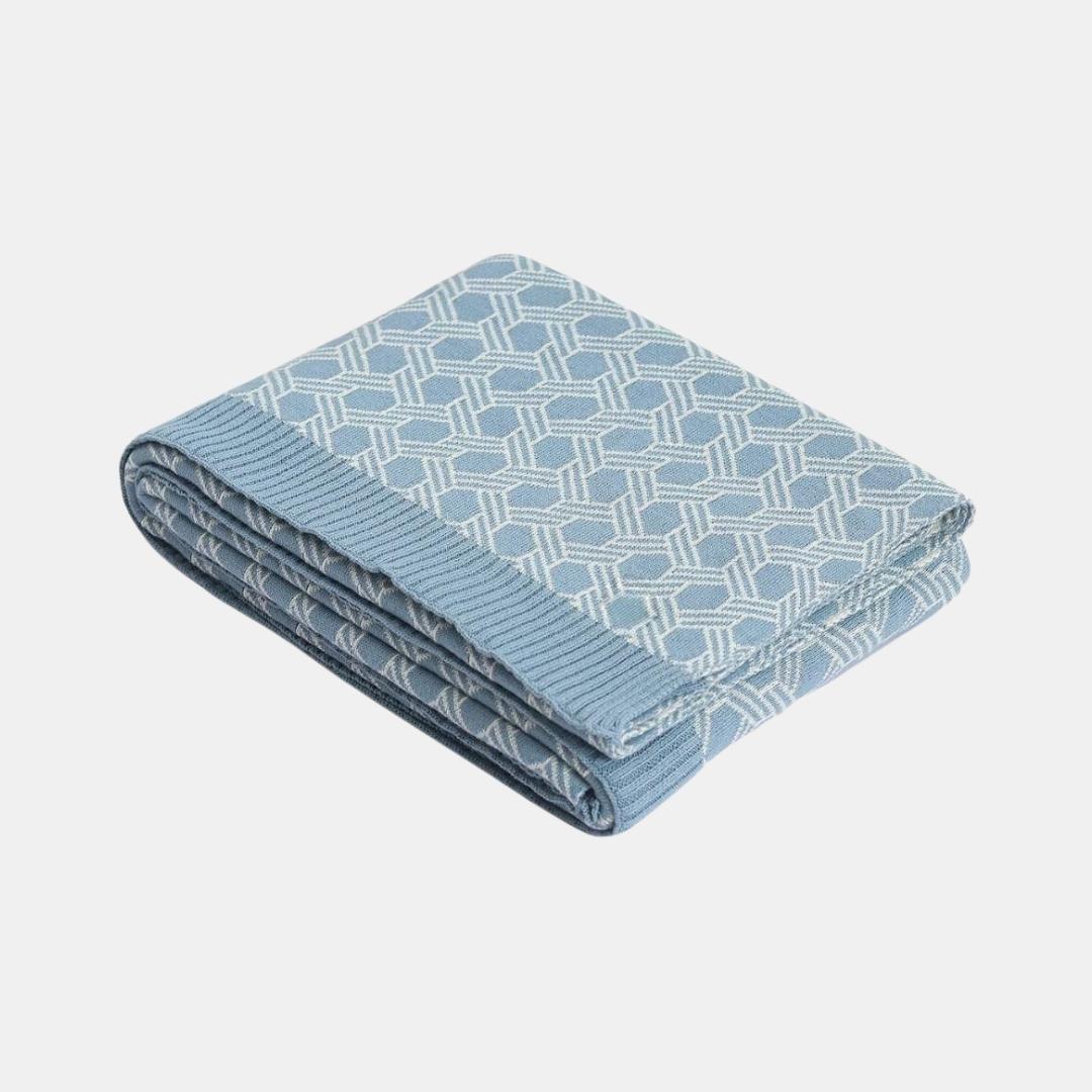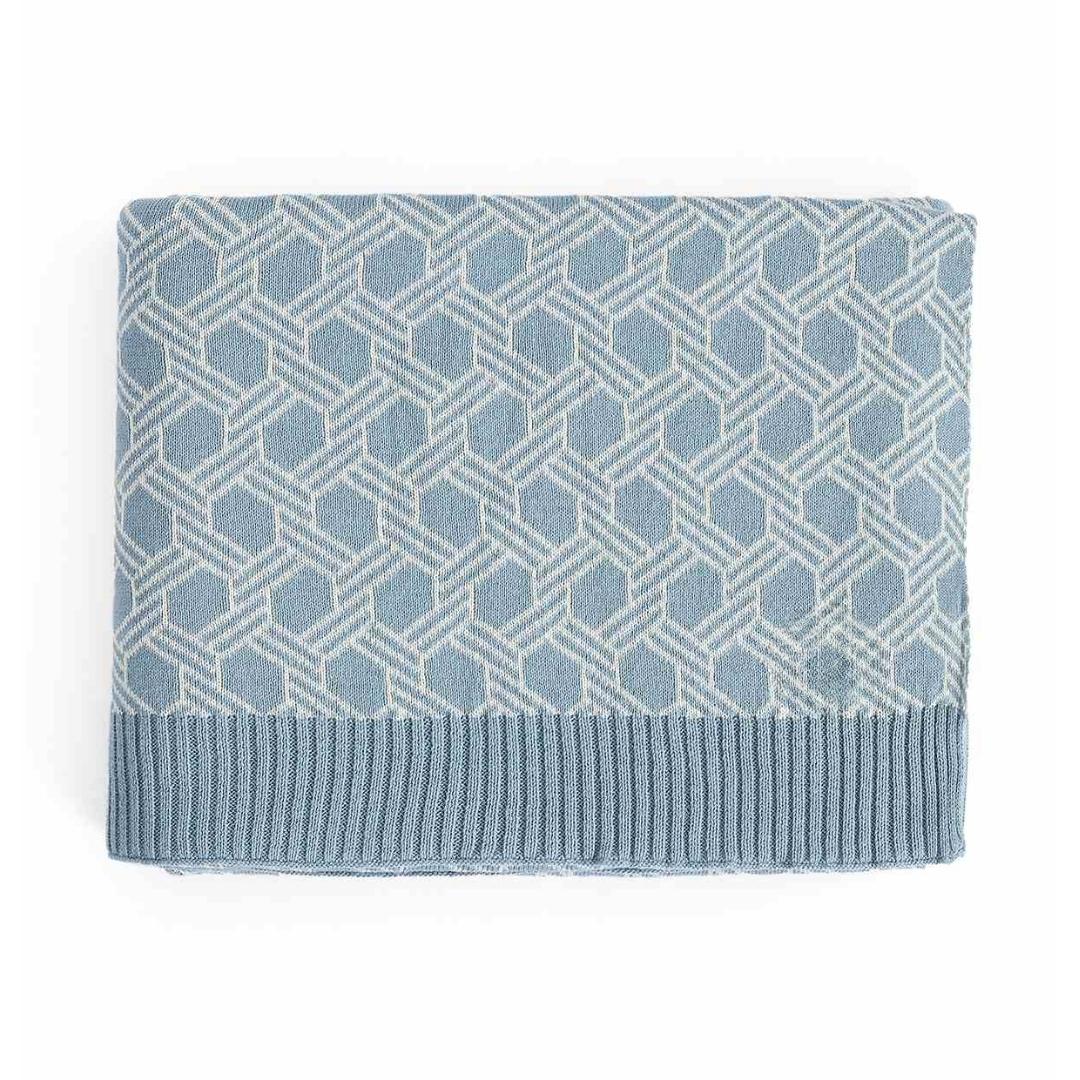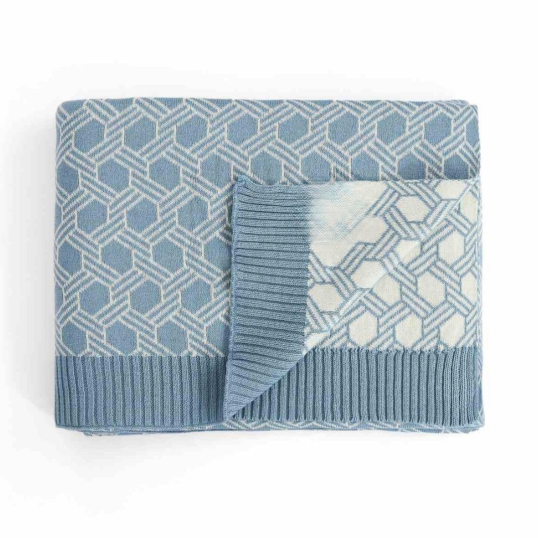 Geometric Alica Blue & Natural Cotton Knitted Throw Blanket (50 in x 60 in)