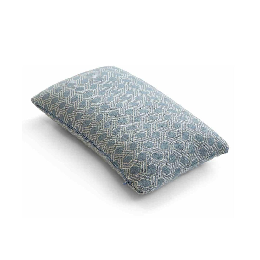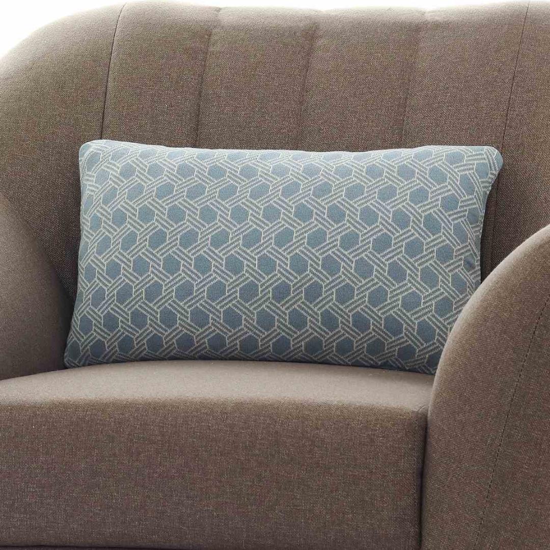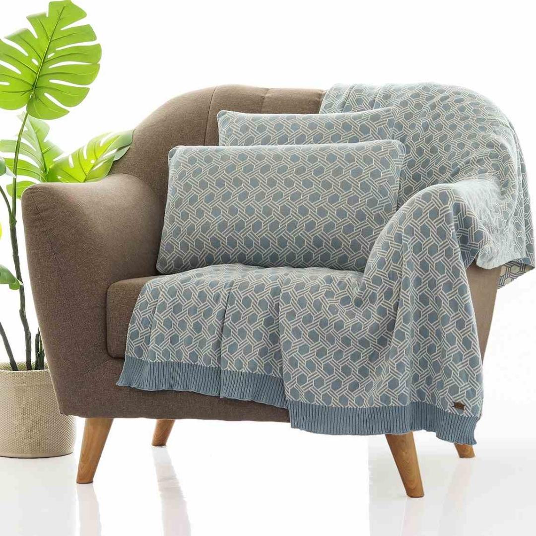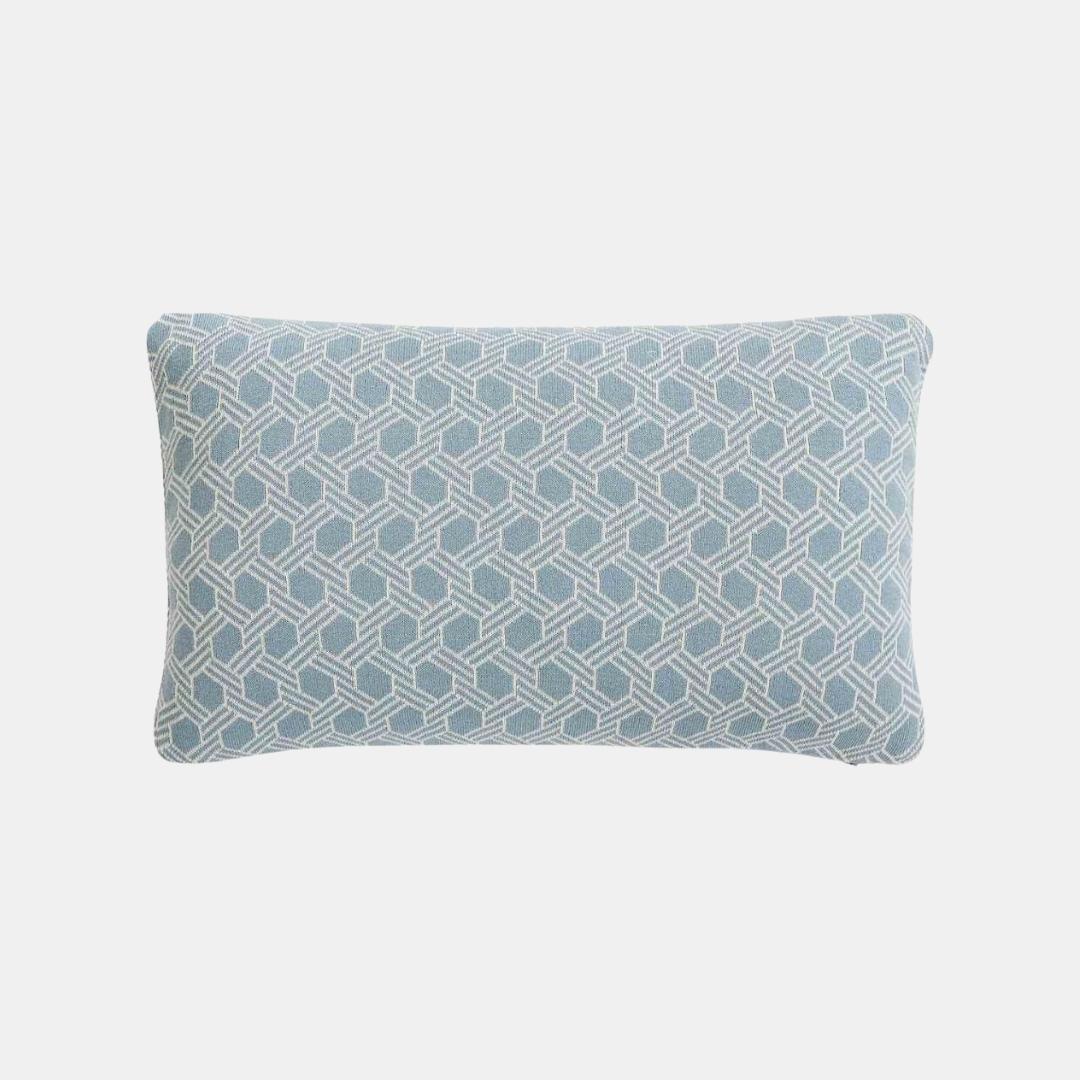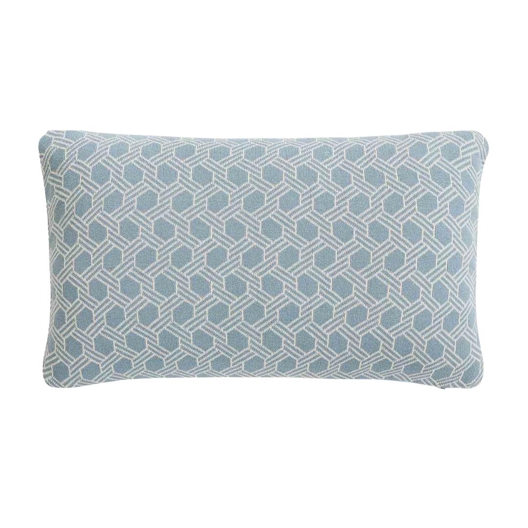 Geometric Alice Blue & Natural Cotton Knitted Decorative Cushion Cover (12 in x 20 in)