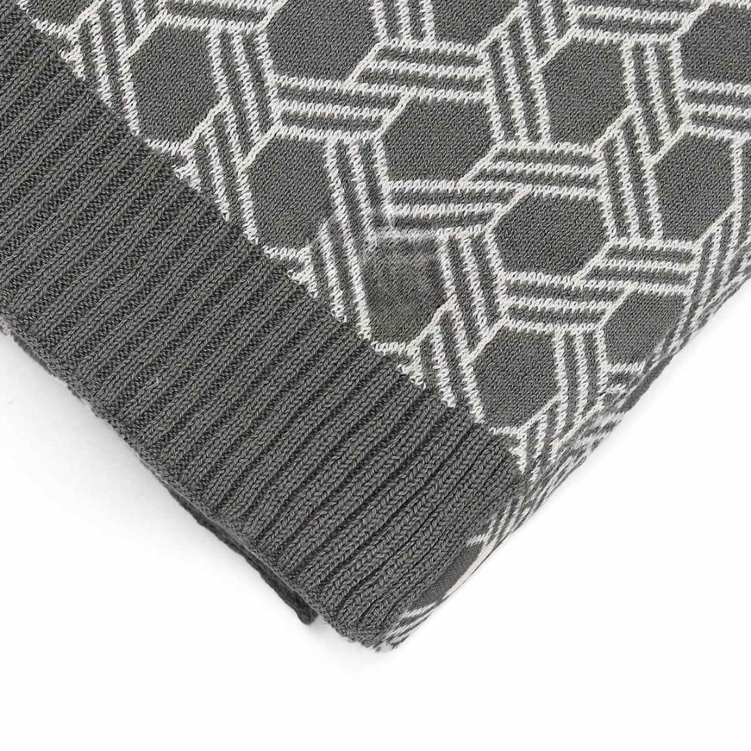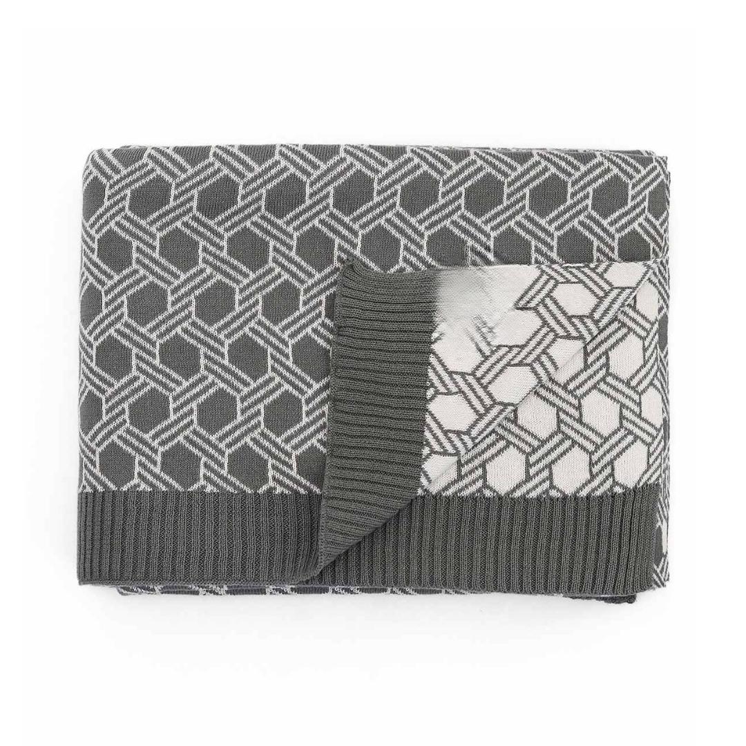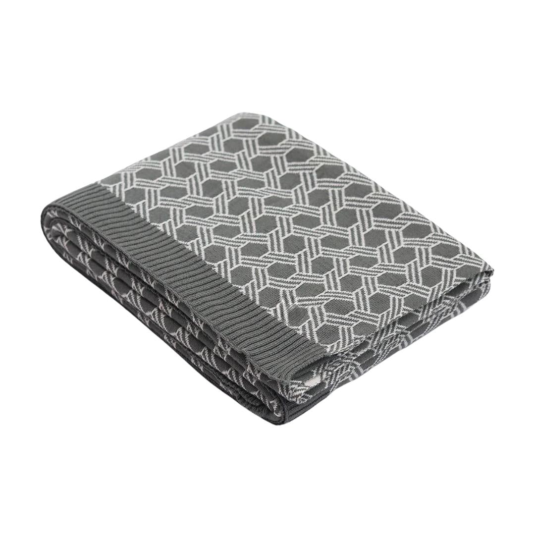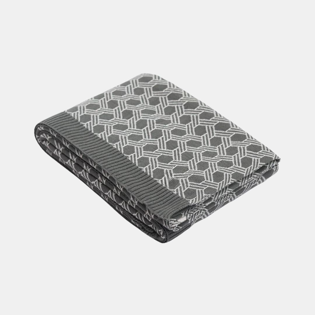 Geometric Fossil & Natural Cotton Knitted Throw Blanket (50 in x 60 in)