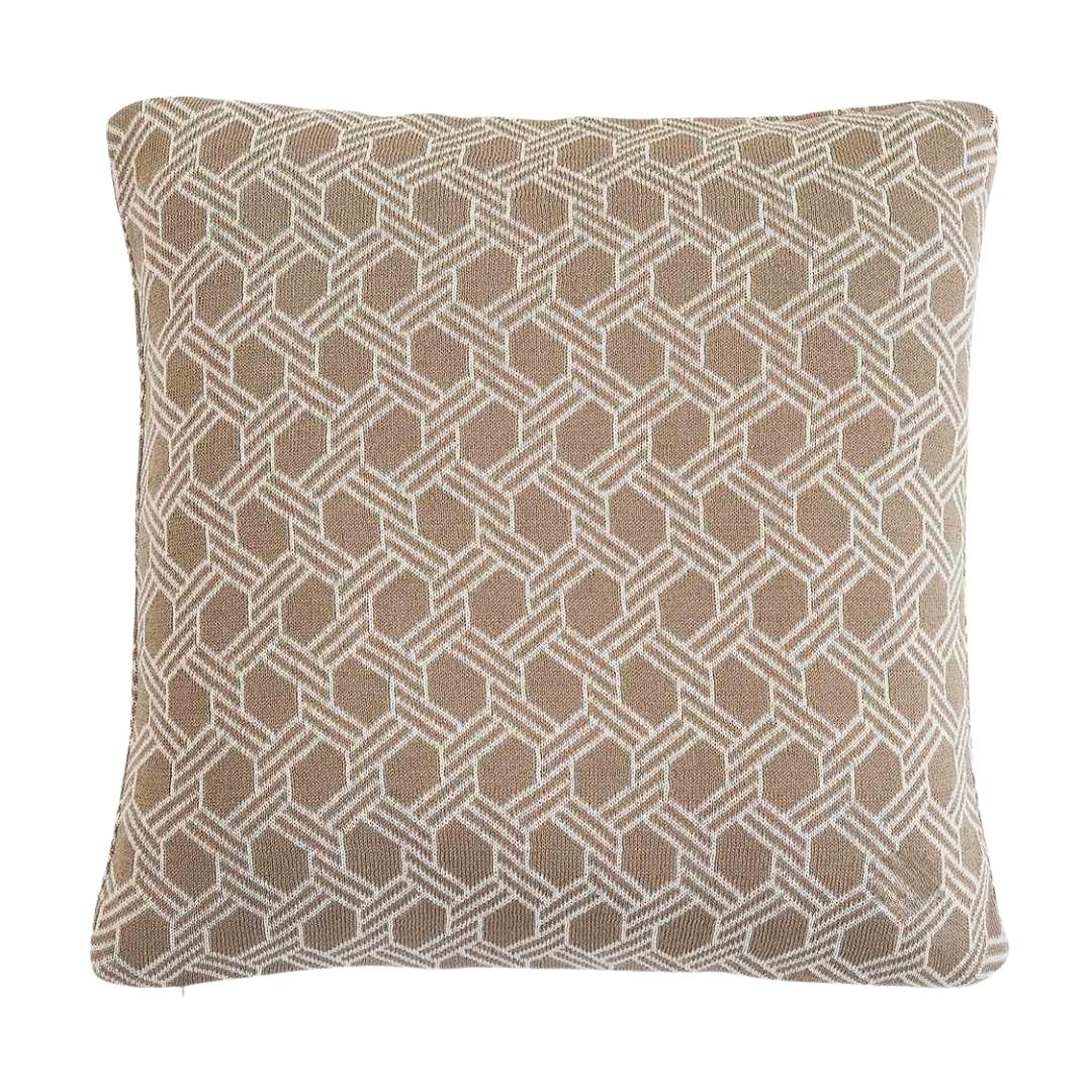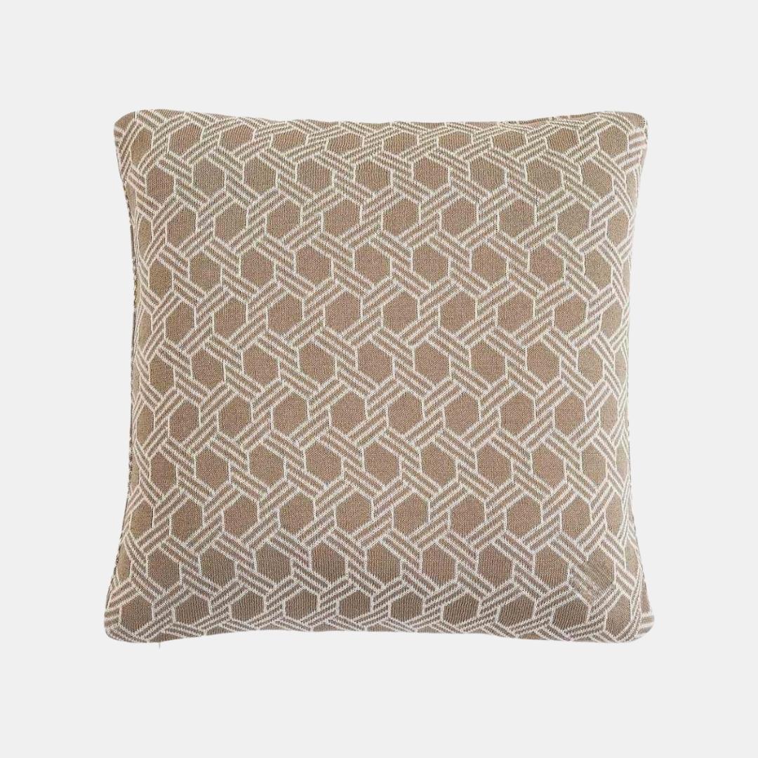 Geometric Stone & Natural Cotton Knitted Decorative Cushion Cover (16 in x 16 in)