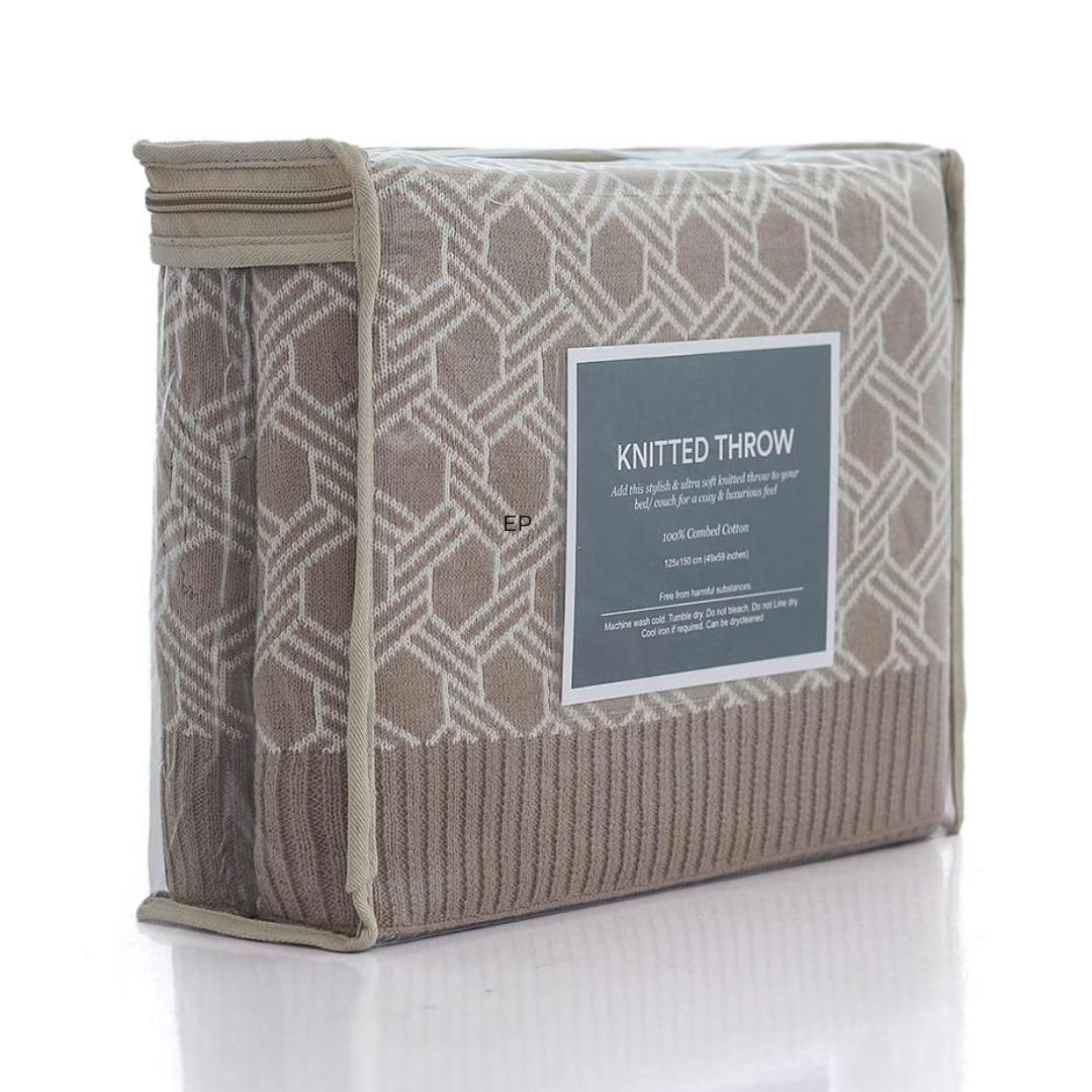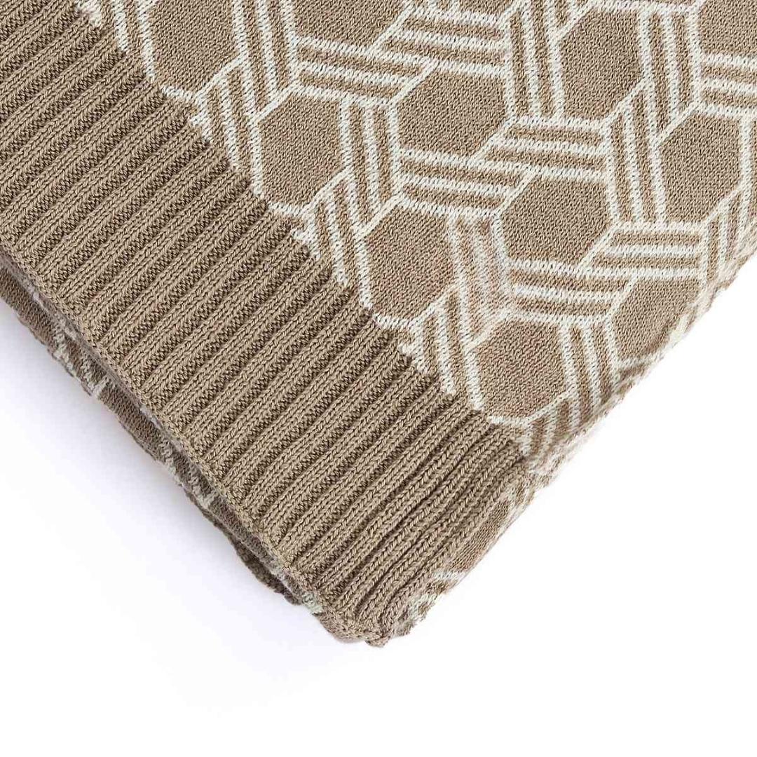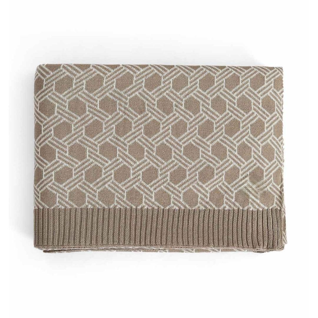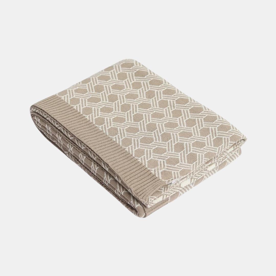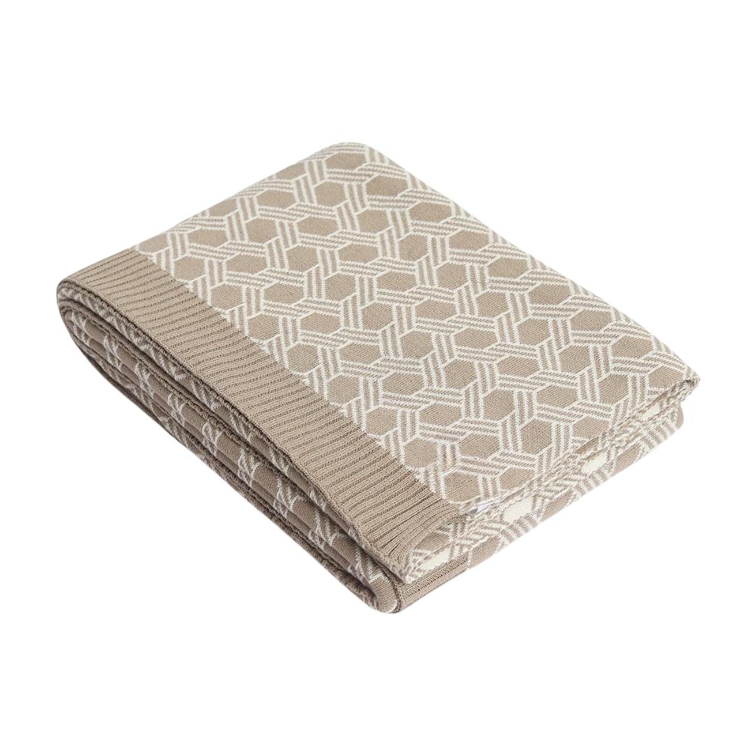 Geometric Stone & Natural Cotton Knitted Throw Blanket (50 in x 60 in)