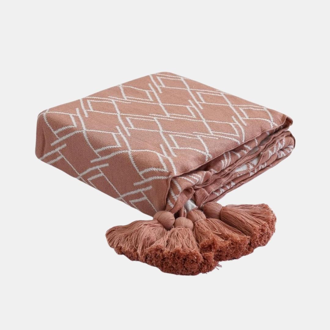 Gianna Dusty Coral & Natural Cotton Knitted Throw Blanket (50 in x 60 in)