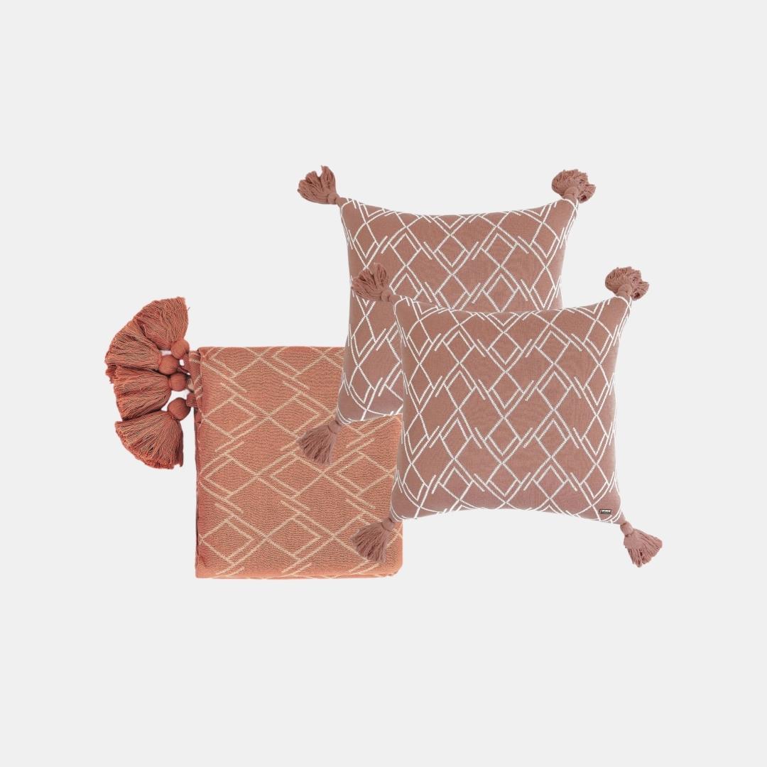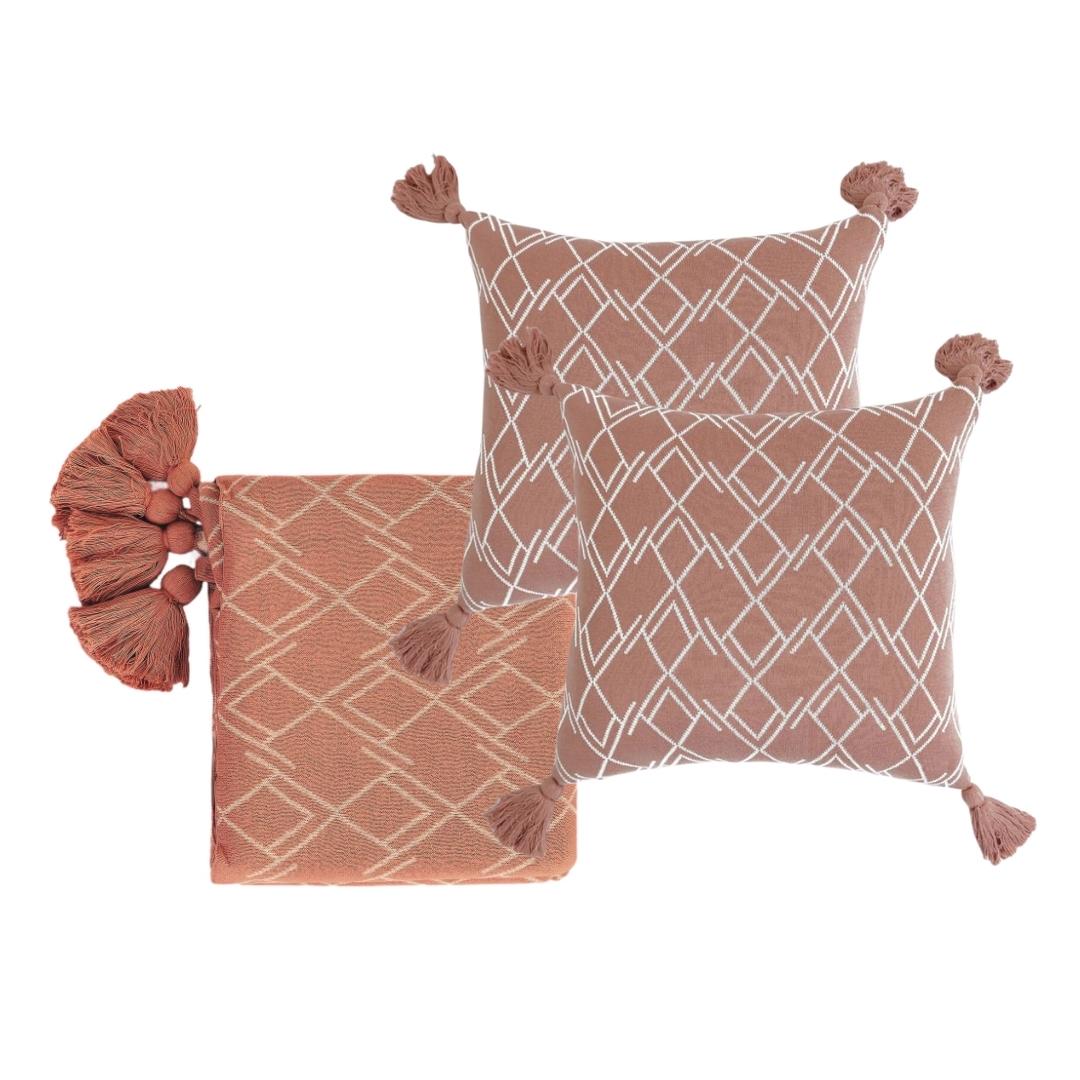 Gianna Dusty Coral & Natural Throw & Cushion Cover Set (18 in x 18 in)