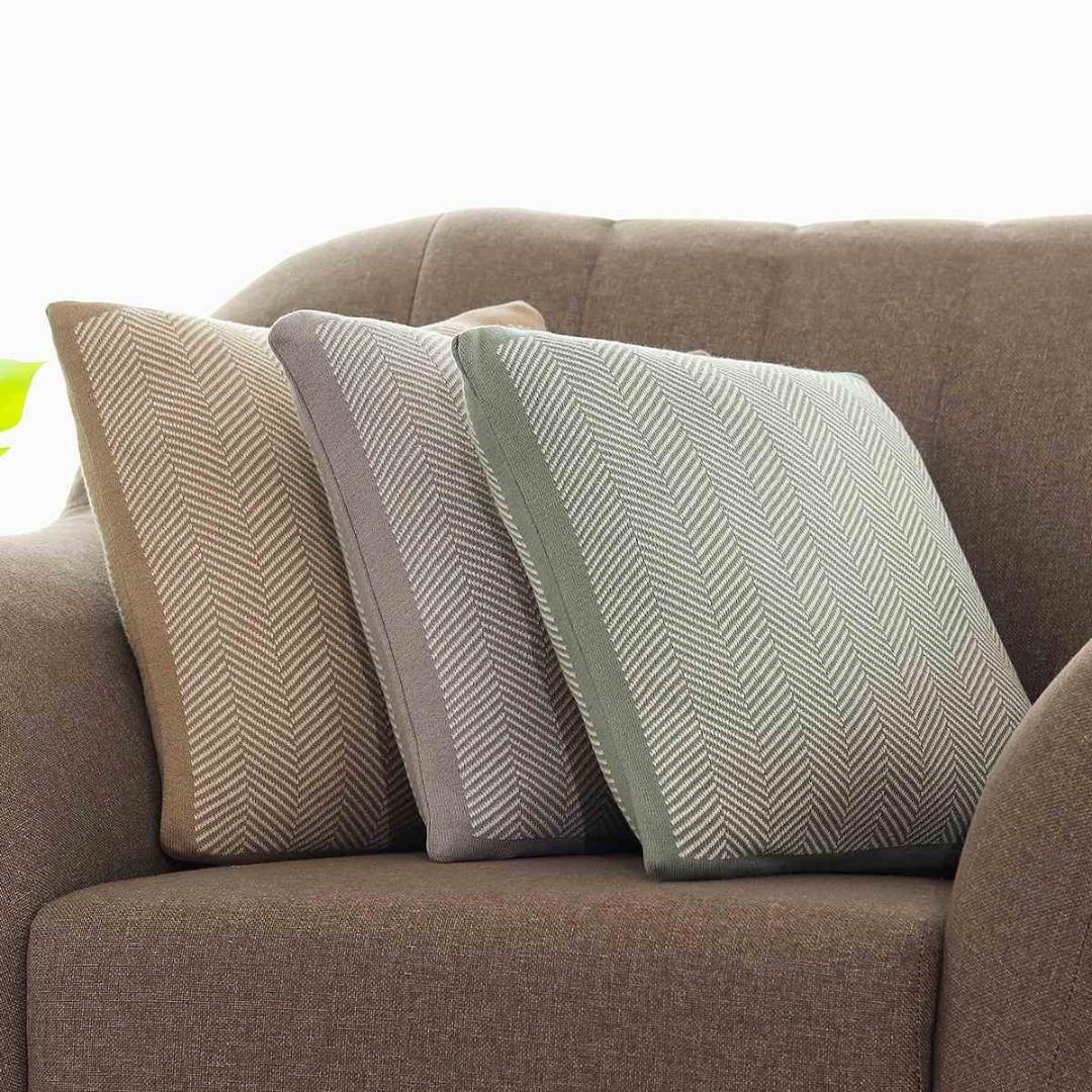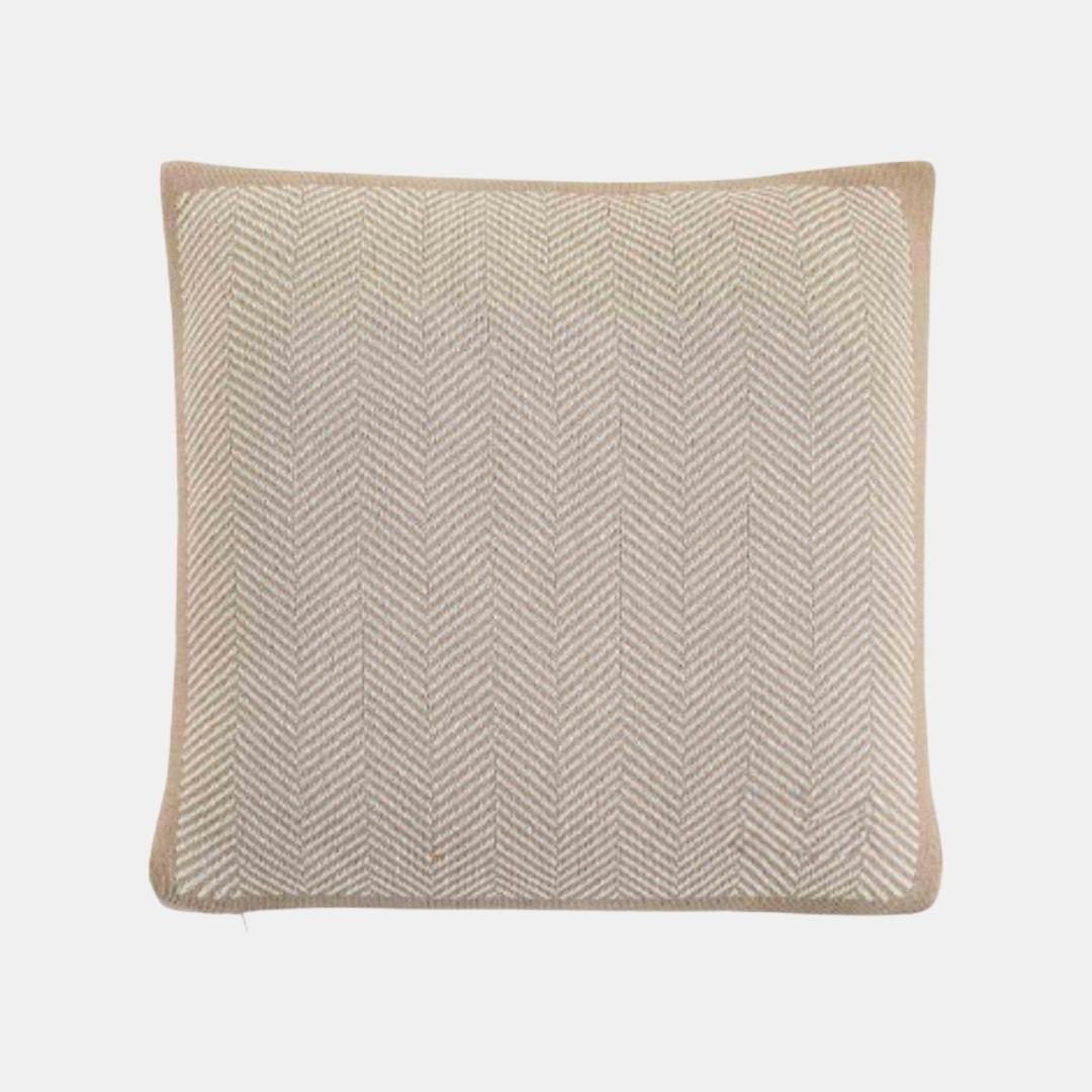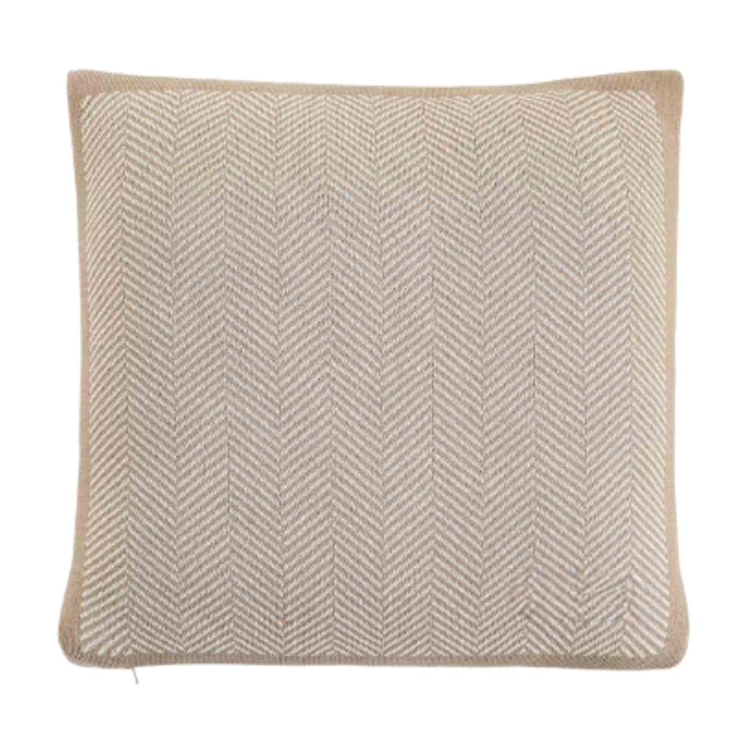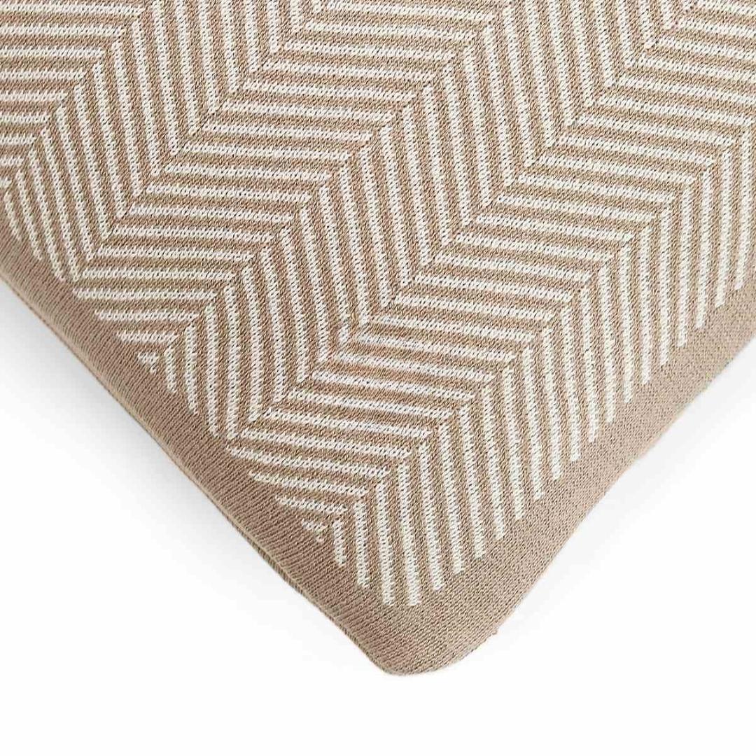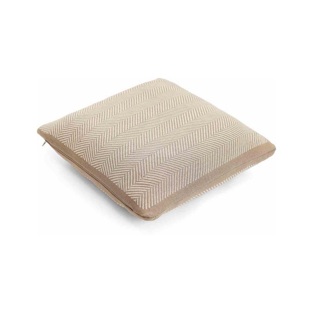 Herringbone Stone & Natural Cotton Knitted Decorative Cushion Cover (16 in x 16 in)