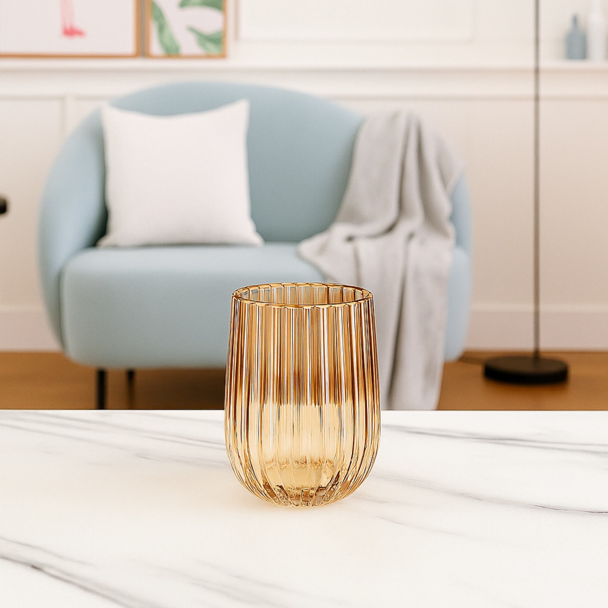 Amber Elegance - This luminous cylinder Glass Vase in warm honey glass adds instant warmth and depth to a table or shelf. A stunning contrast against fresh greens or white blooms.