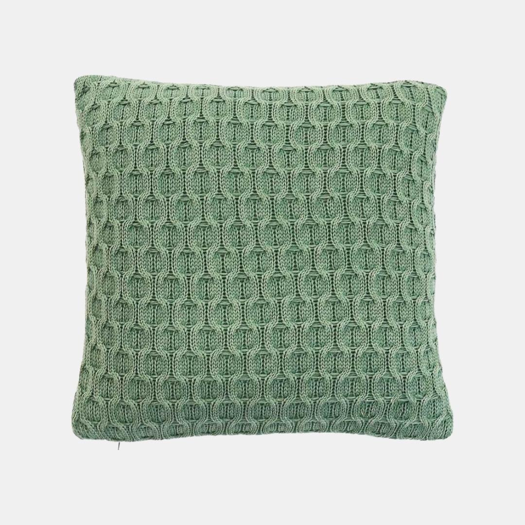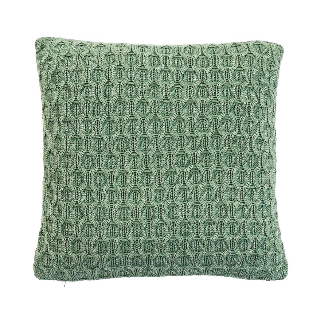 Kelly Knit Bermuda Green Cotton Knitted Decorative Cushion Cover (16 in x 16 in)