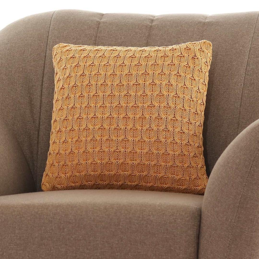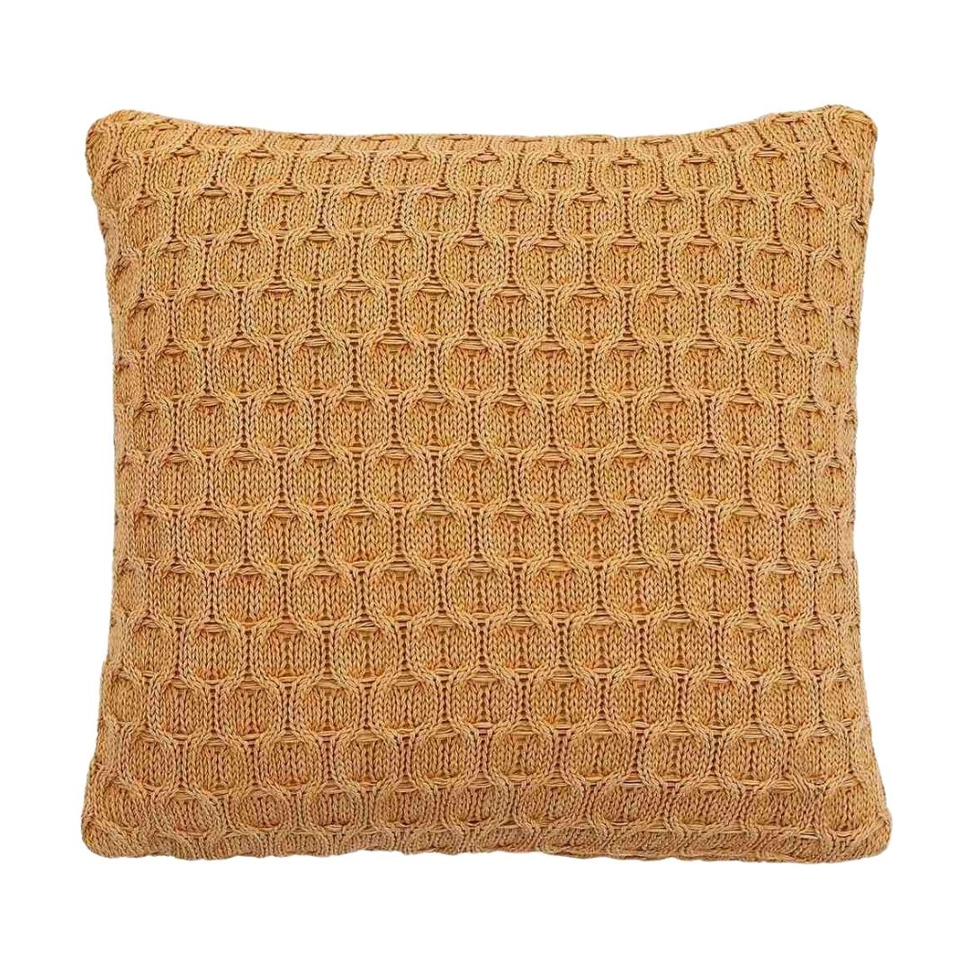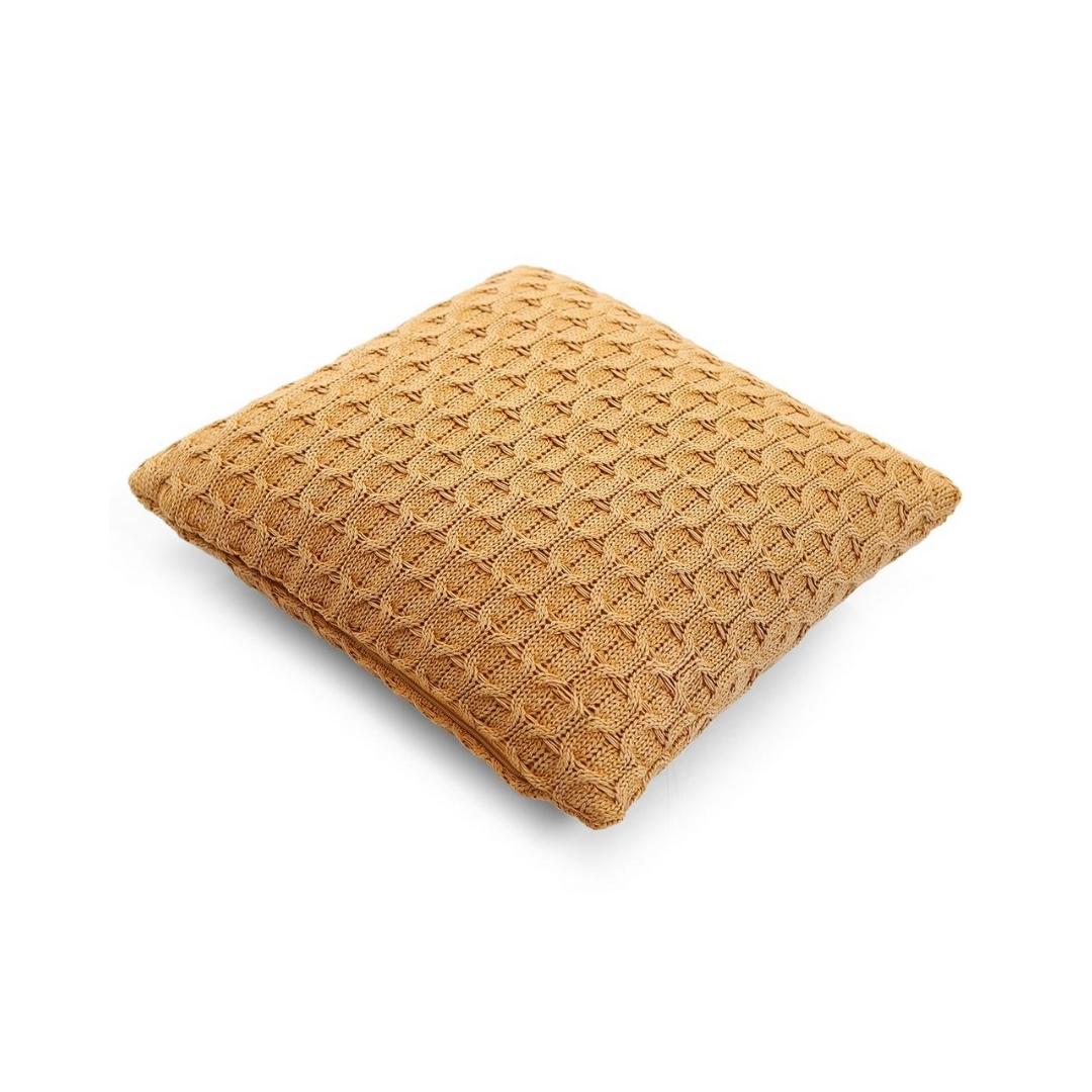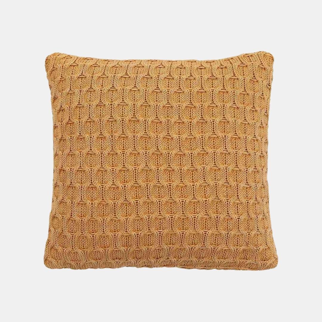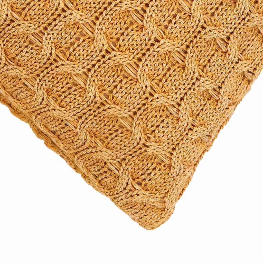 Kelly Knit Mustard Cotton Knitted Decorative Cushion Cover (16 in x 16 in)