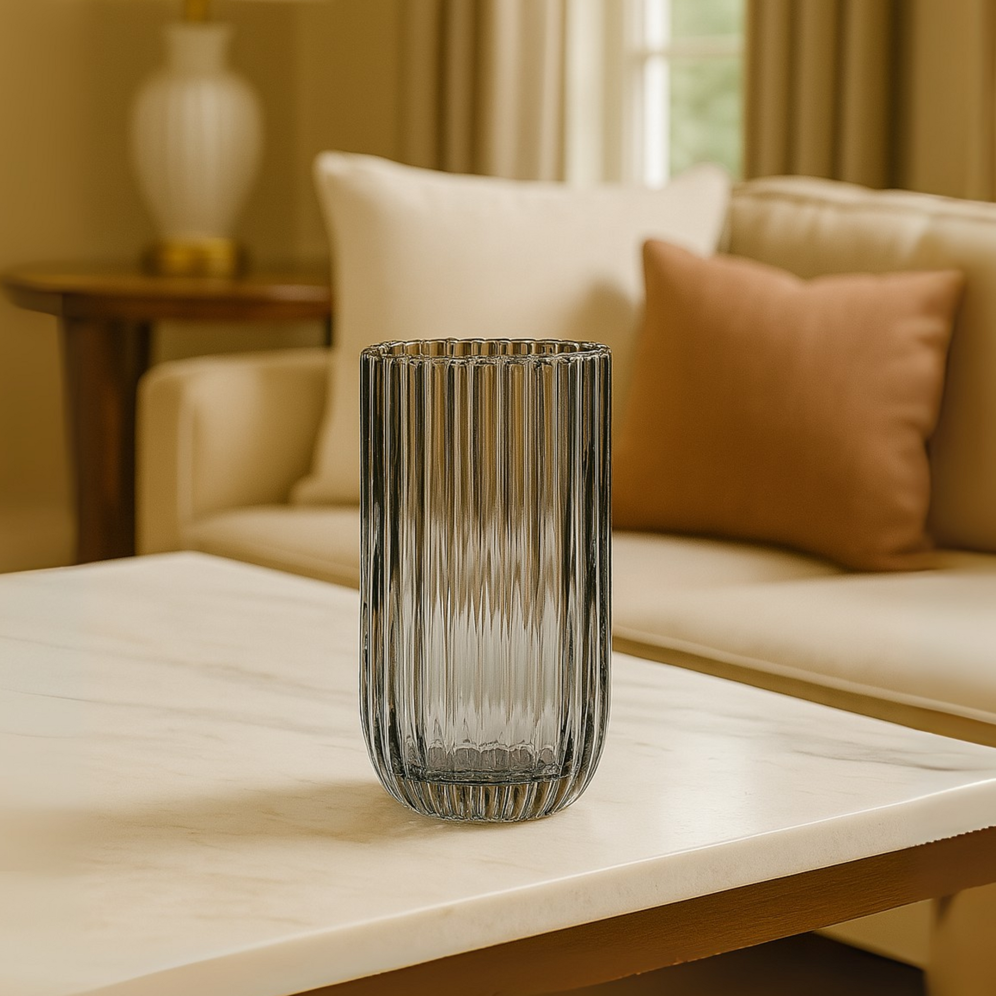 Mysterious & Modern - A dusky grey finish and curved silhouette give the Mistfall Glass Vase an air of understated drama. Ideal for monochrome arrangements or high-contrast designs.