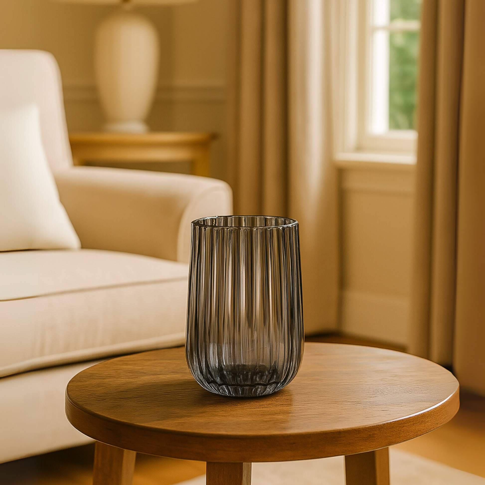 Mysterious & Modern - A dusky grey finish and curved silhouette give the Mistfall Glass Vase an air of understated drama. Ideal for monochrome arrangements or high-contrast designs.