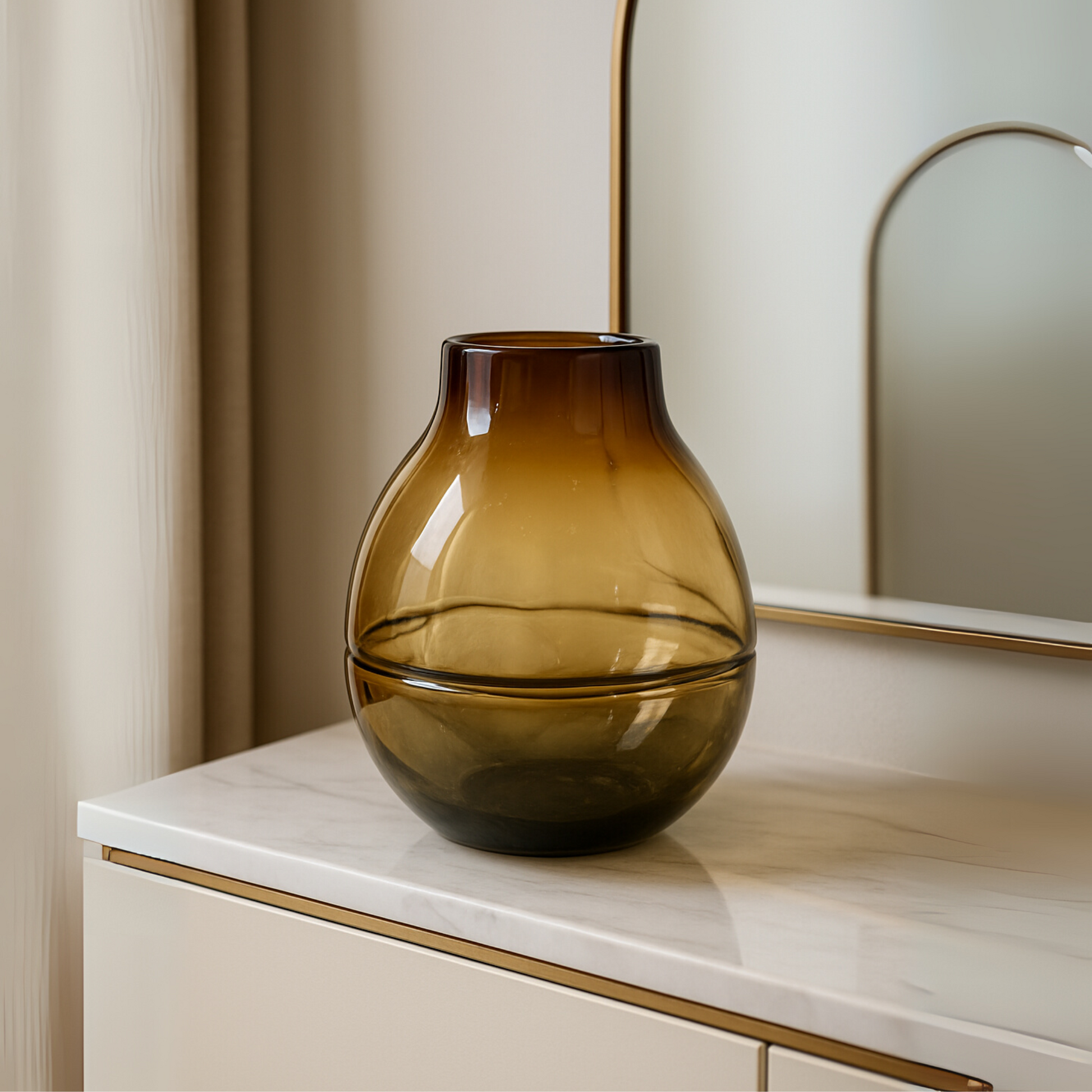 Smooth, Sophisticated Contrast - A soft coffee-brown hue fades into smoky black, giving the Mocha Smoke Glass Vase a fluid, ombré effect. Best displayed with light pampas, pale roses, or on a textured wood surface.