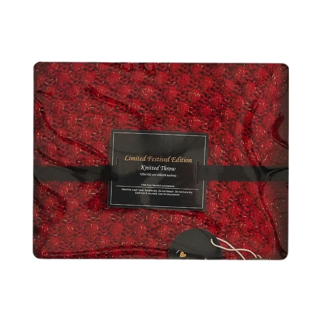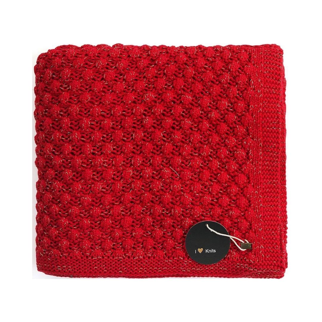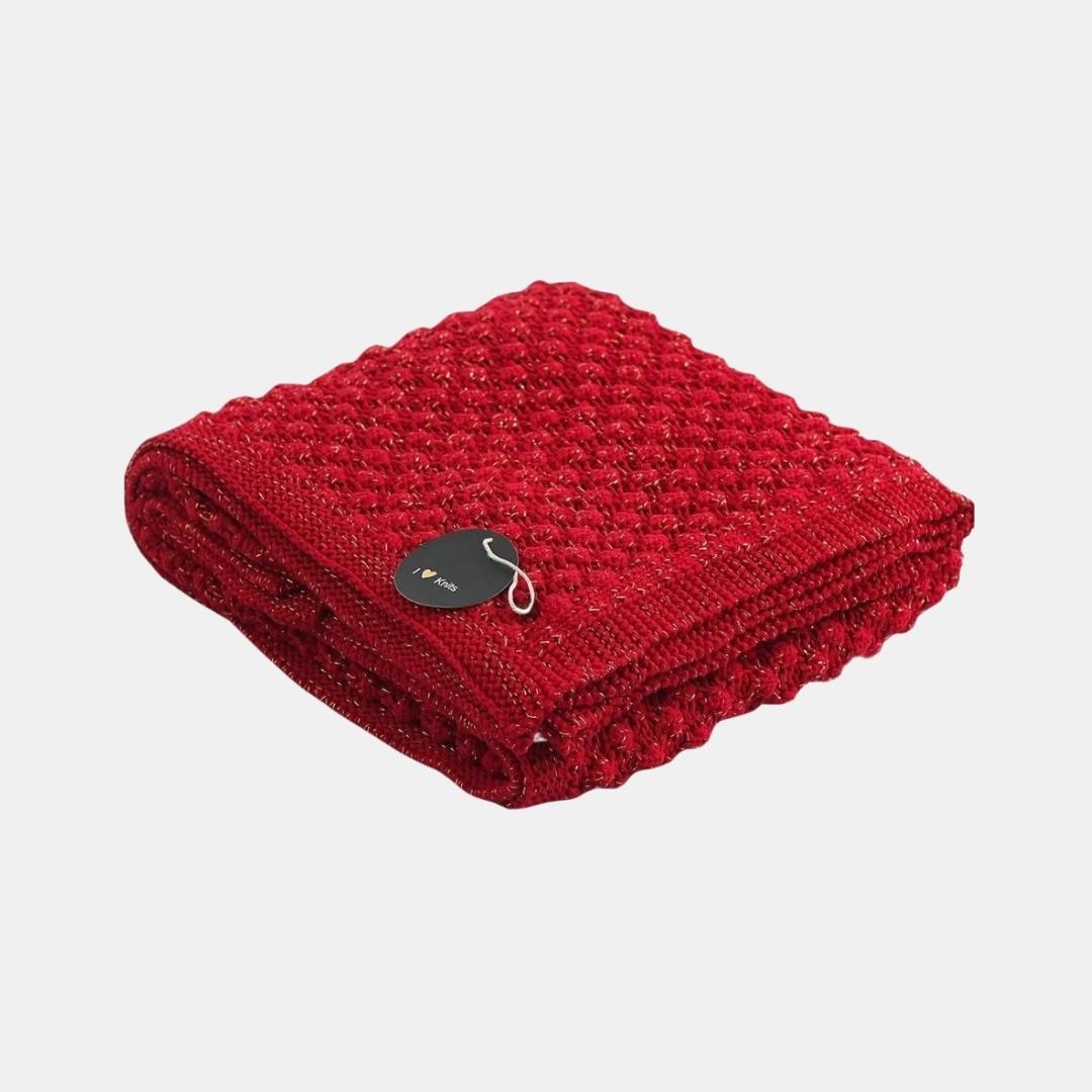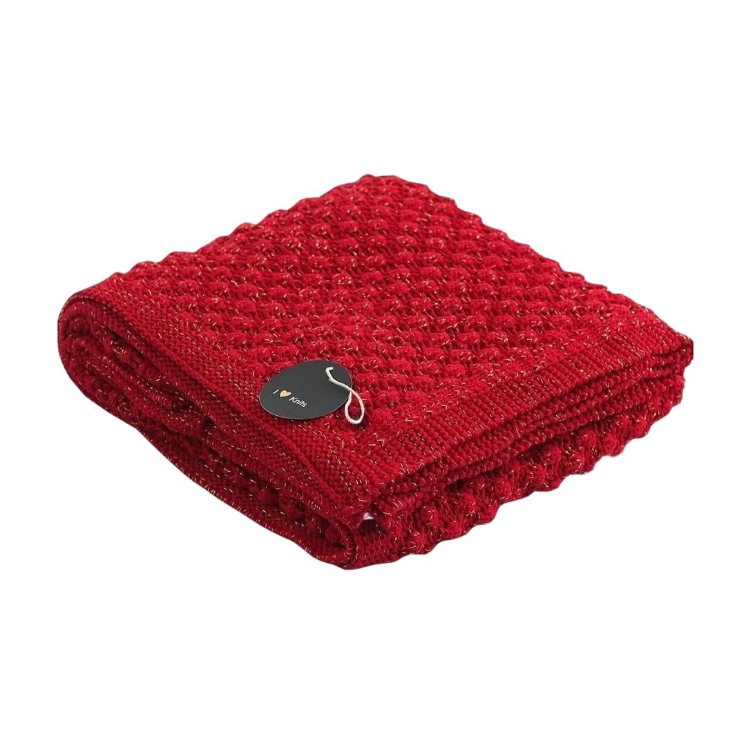 Popcorn Red & Golden Metallic Cotton Knitted Throw Blanket (50 in x 60 in)