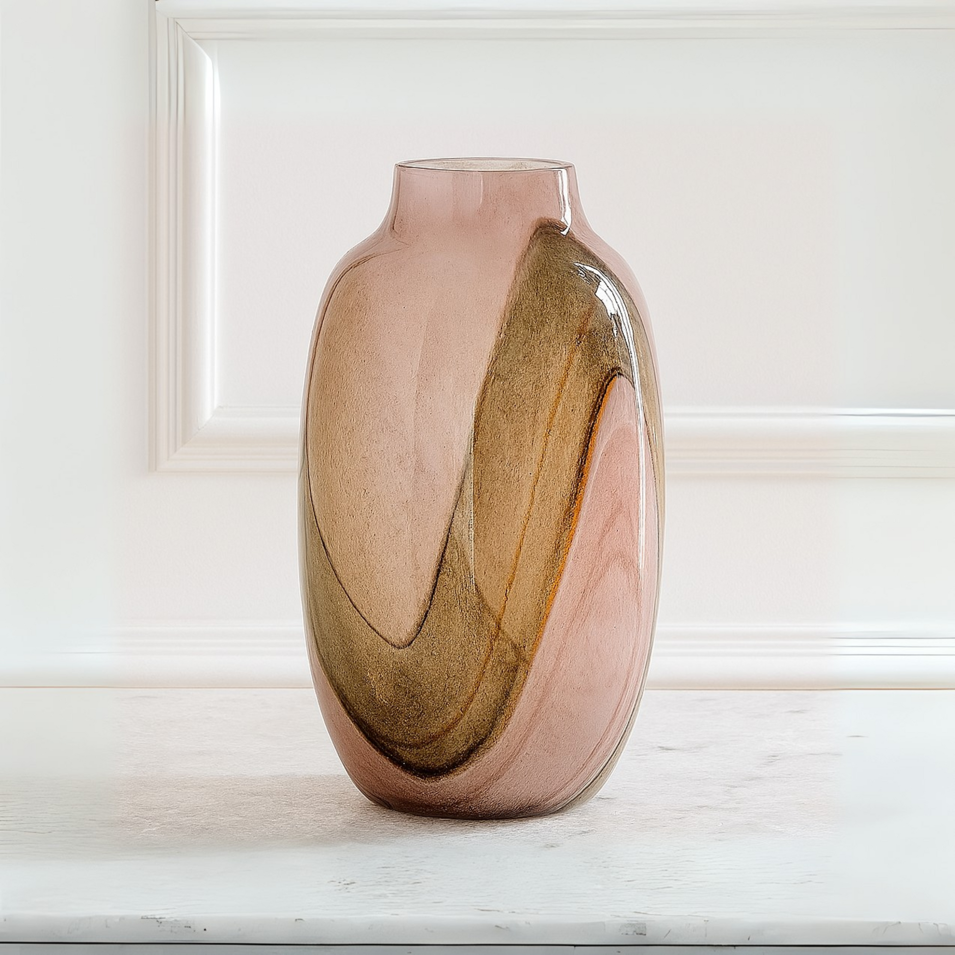 Soft Hue, Subtle Drama - The RoseSmoke Glass Vase blends gentle blush pink with moody grey in a graceful, curved silhouette. A perfect accent for modern interiors that favor soft contrasts and understated beauty.