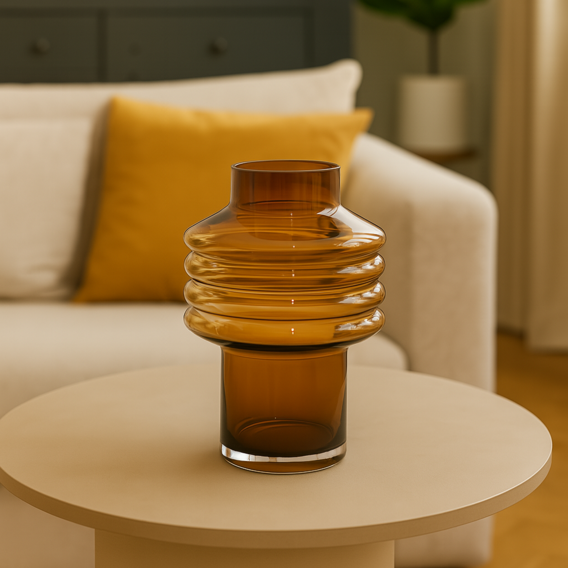 Airy Hue, Earthy Tone - The Sandsmoke Glass Vase features a delicate, transparent light brown tint reminiscent of windswept desert glass. Its soft curves and neutral tone make it a timeless accent in any space