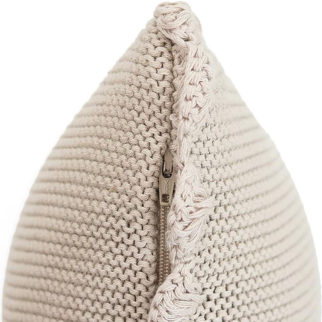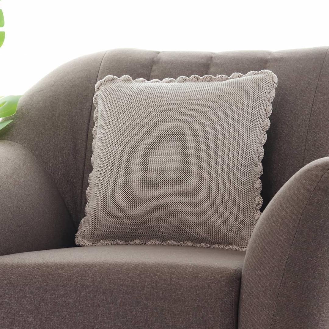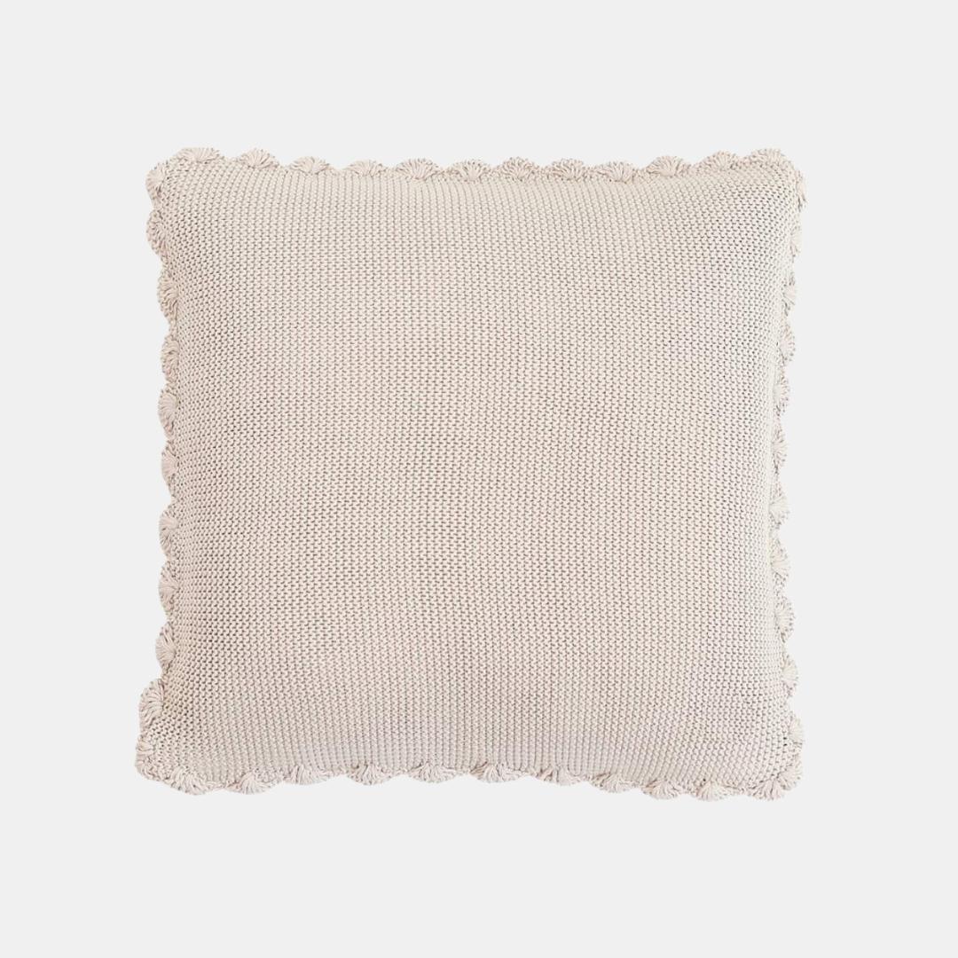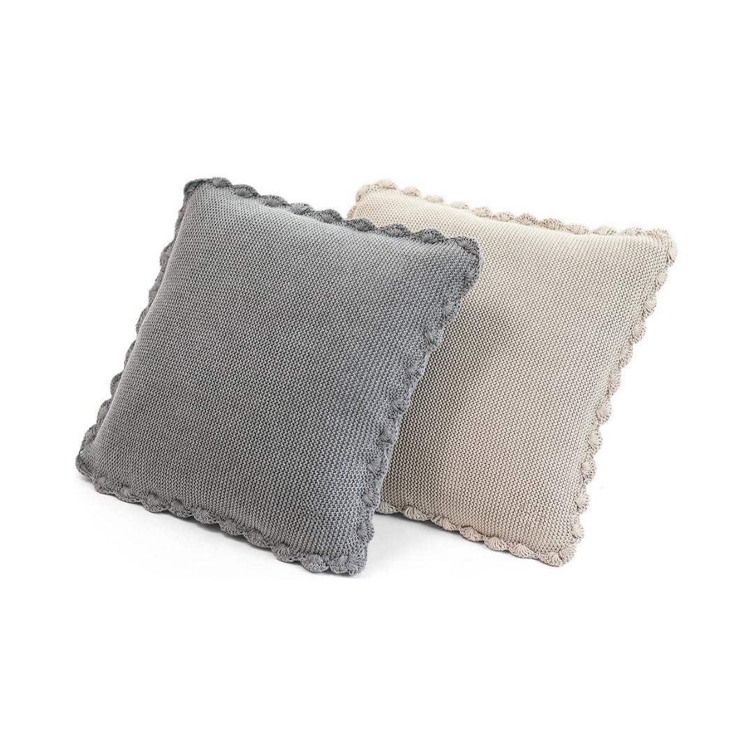 Transfer Knit with Hand Crochet Border Pale Whisper Cotton Knitted Decorative Cushion Cover (16 in x 16 in)