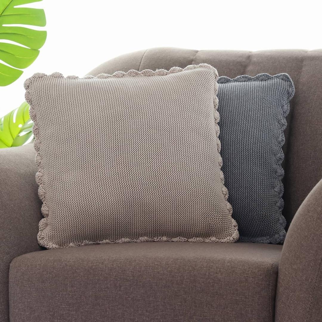 Add a touch of handcrafted elegance to your decor with the Transfer Knit with Hand Crochet Border Pale Whisper Cotton Knitted Decorative Cushion Cover. Measuring 16x16 inches, this cushion cover is perfect for adding a stylish accent to your sofa or bed. The pale whisper color and hand crochet border create a chic and inviting atmosphere. Made from soft and breathable cotton, this cushion cover is both stylish and comfortable.